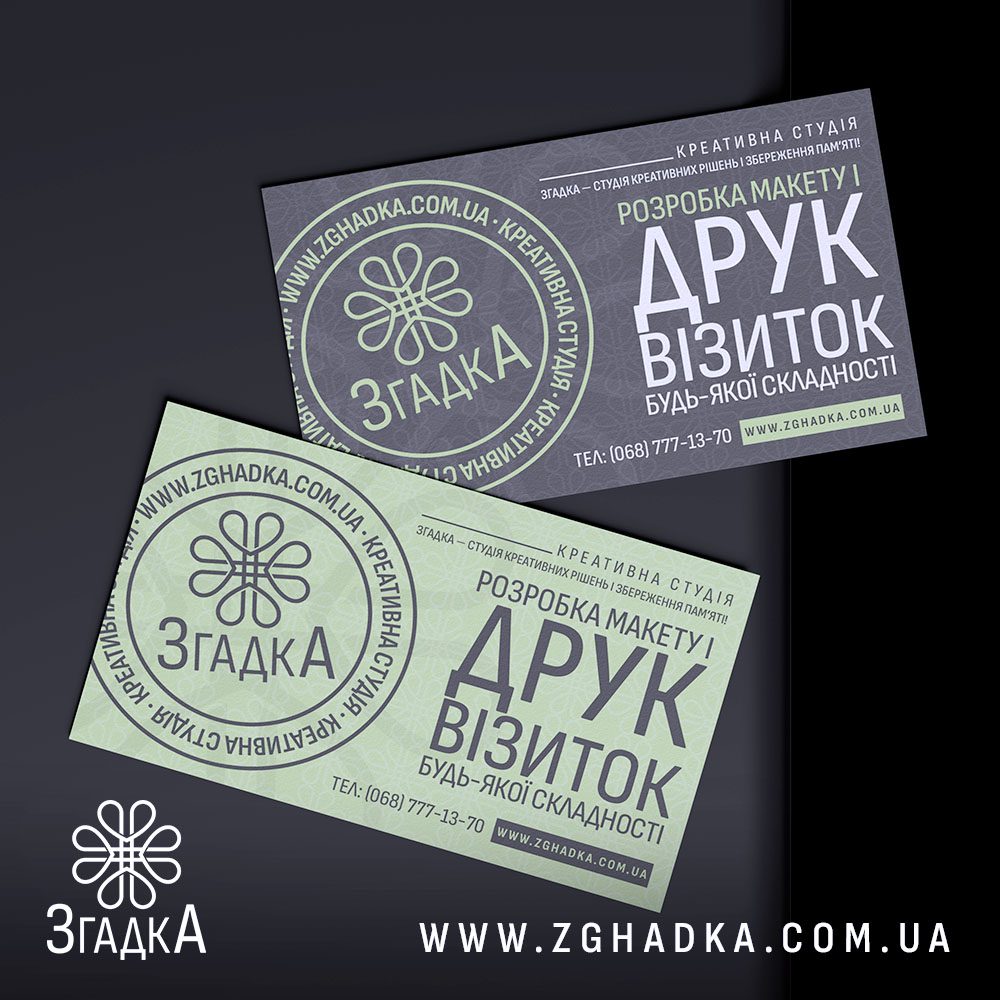 Зробіть перший крок до власного брендового стилю — довірте створення візиток фахівцям студії Згадка.