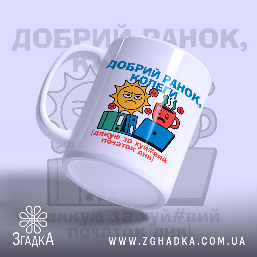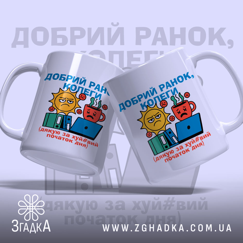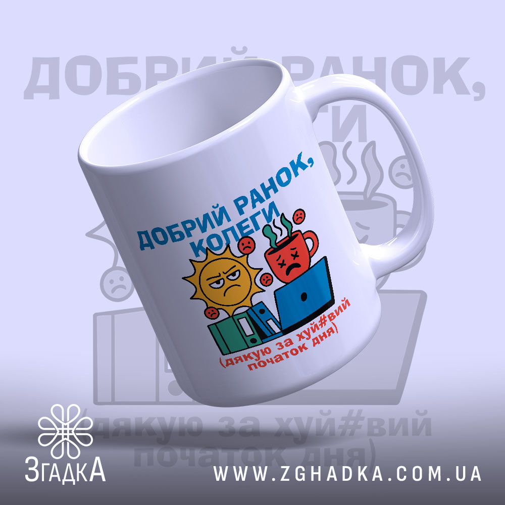 Чашка ‘Добрий ранок, колеги’ — це не просто посуд, а символ доброзичливості та позитиву. Подаруйте її своїм близьким та зробіть їхній ранок яскравішим!