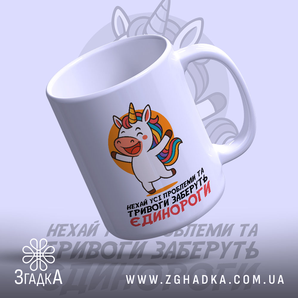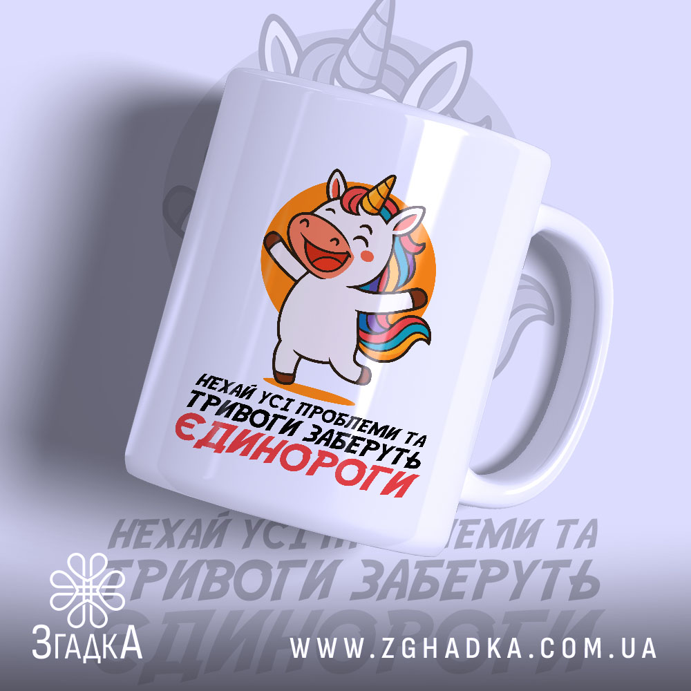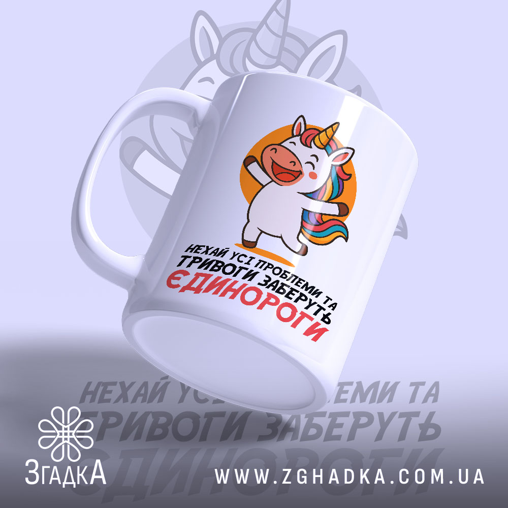 На чашці зображені яскраві єдинороги, які надихають на мрії. Замовте свою чашку вже сьогодні і додайте трохи магії у ваше життя!