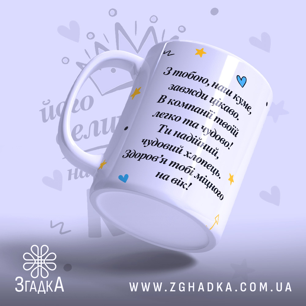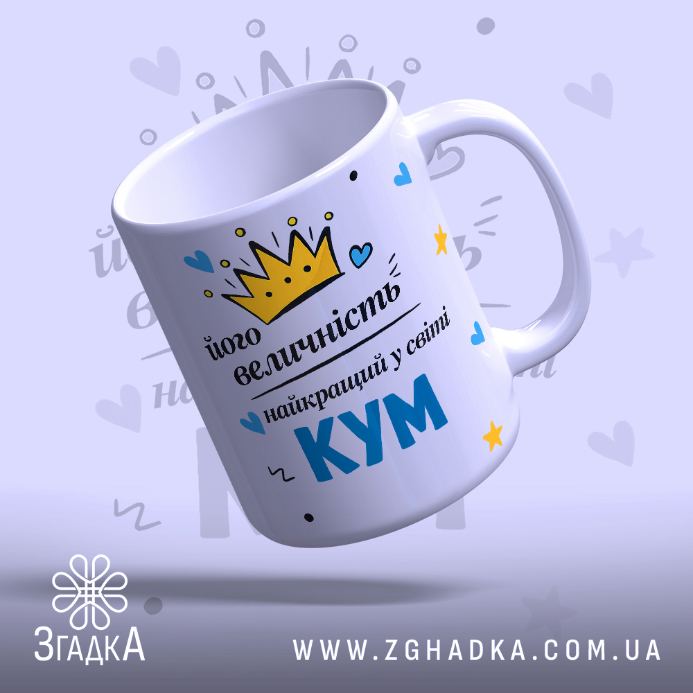 На чашці написано ‘Чашка його величність КУМ’ – виразний слоган, що підкреслює вашу індивідуальність. Оформіть замовлення вже сьогодні та насолоджуйтеся кожним ковтком!