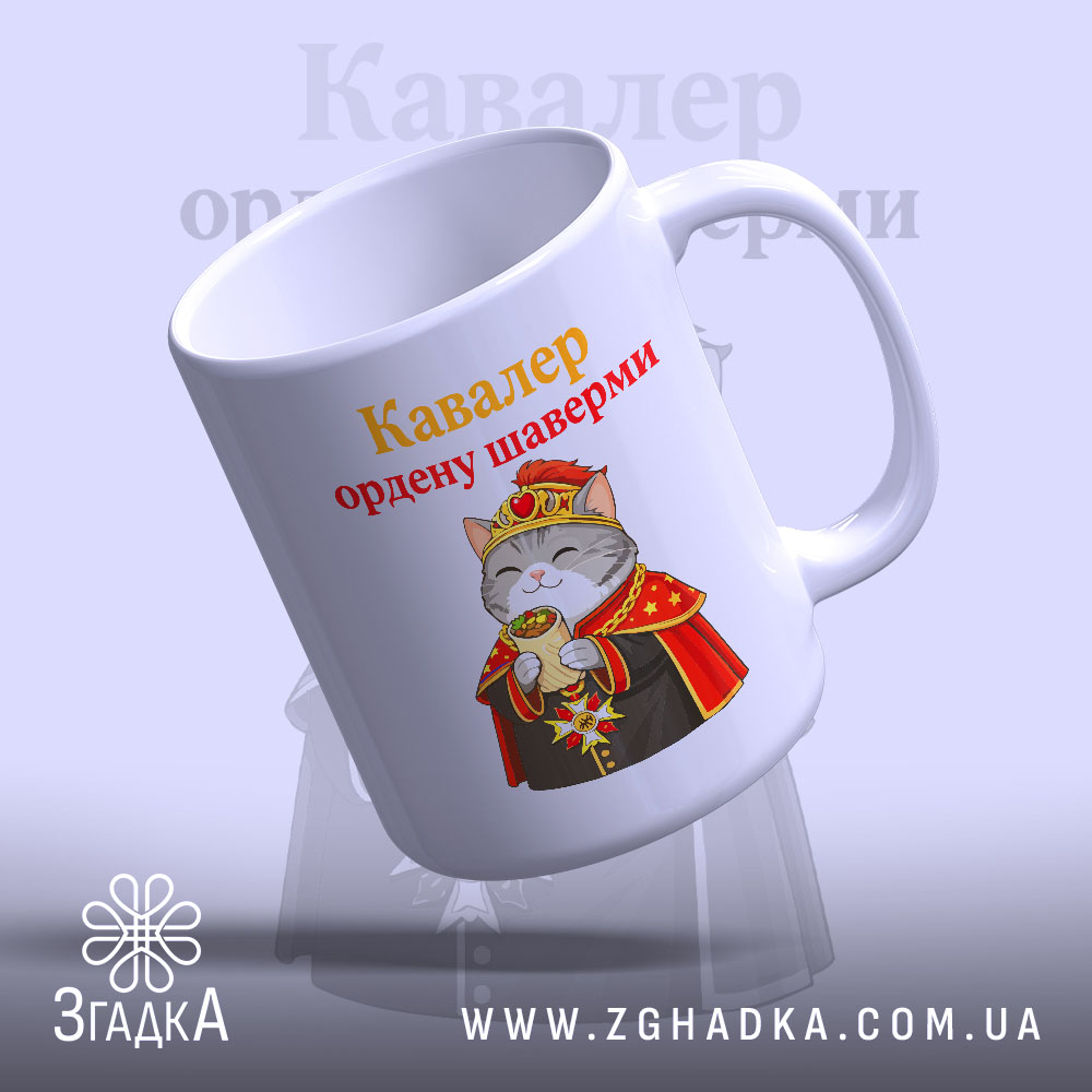 Чашка з принтом ‘Кавалер ордену шаверми’ ідеально підходить для дому, офісу чи як оригінальний подарунок. Вона стане вашим вірним супутником під час ранкової кави або чаю.