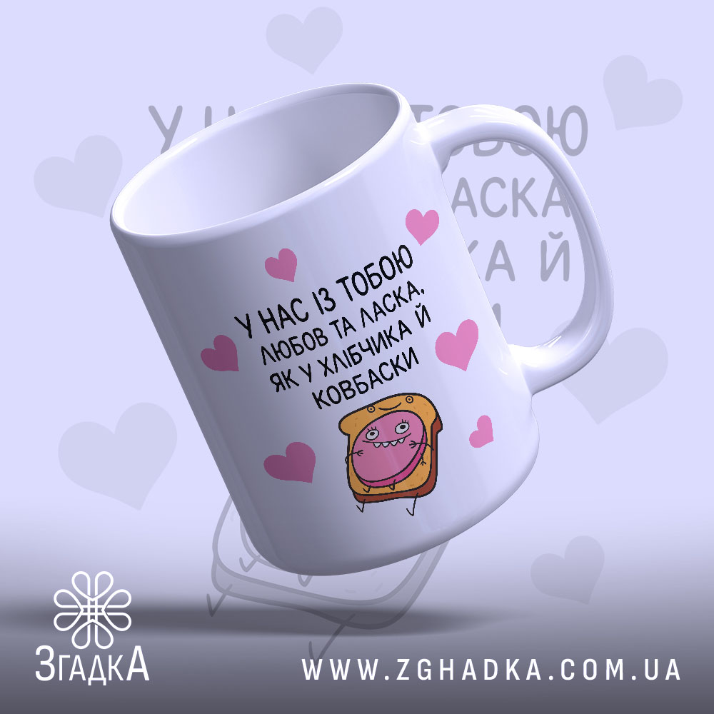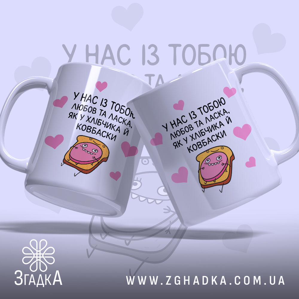 Чашка ‘хлібчик й ковбаска’ — це не просто посуд, а частина вашого стилю життя. Замовте її сьогодні та насолоджуйтеся кожним ковтком з улюбленим принтом!