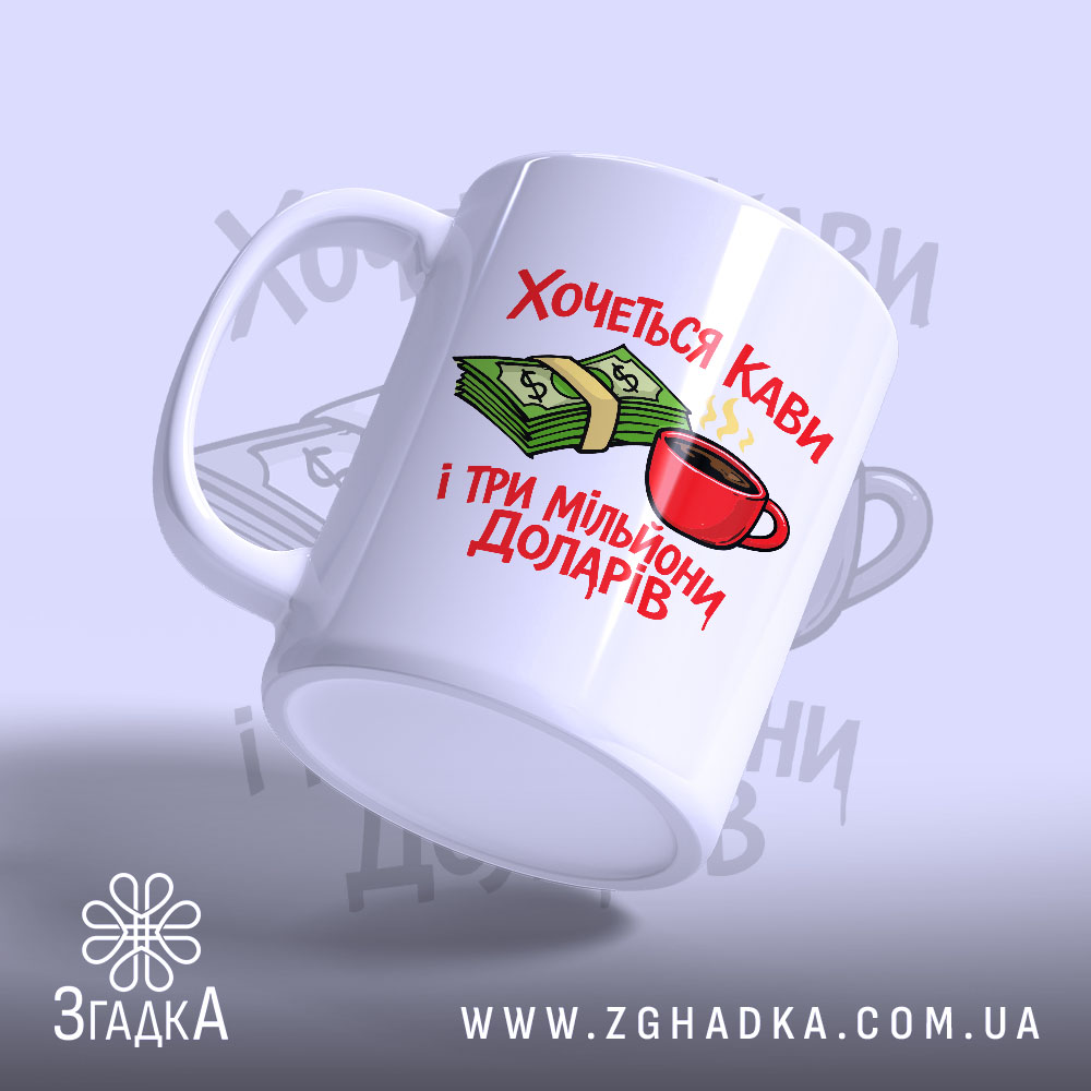 Чашка з принтом ‘хочеться кави і три мільйони доларів’ – ідеальний вибір для дому та офісу. Виготовлена з міцної кераміки, вона стане чудовим подарунком.