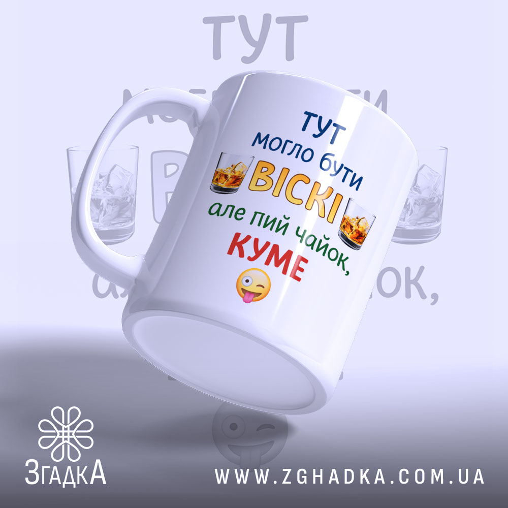 На чашці зображено виразний напис, що підкреслює особливість моменту. Замовте цю чашку куму для віскі вже сьогодні та зробіть свій подарунок незабутнім!