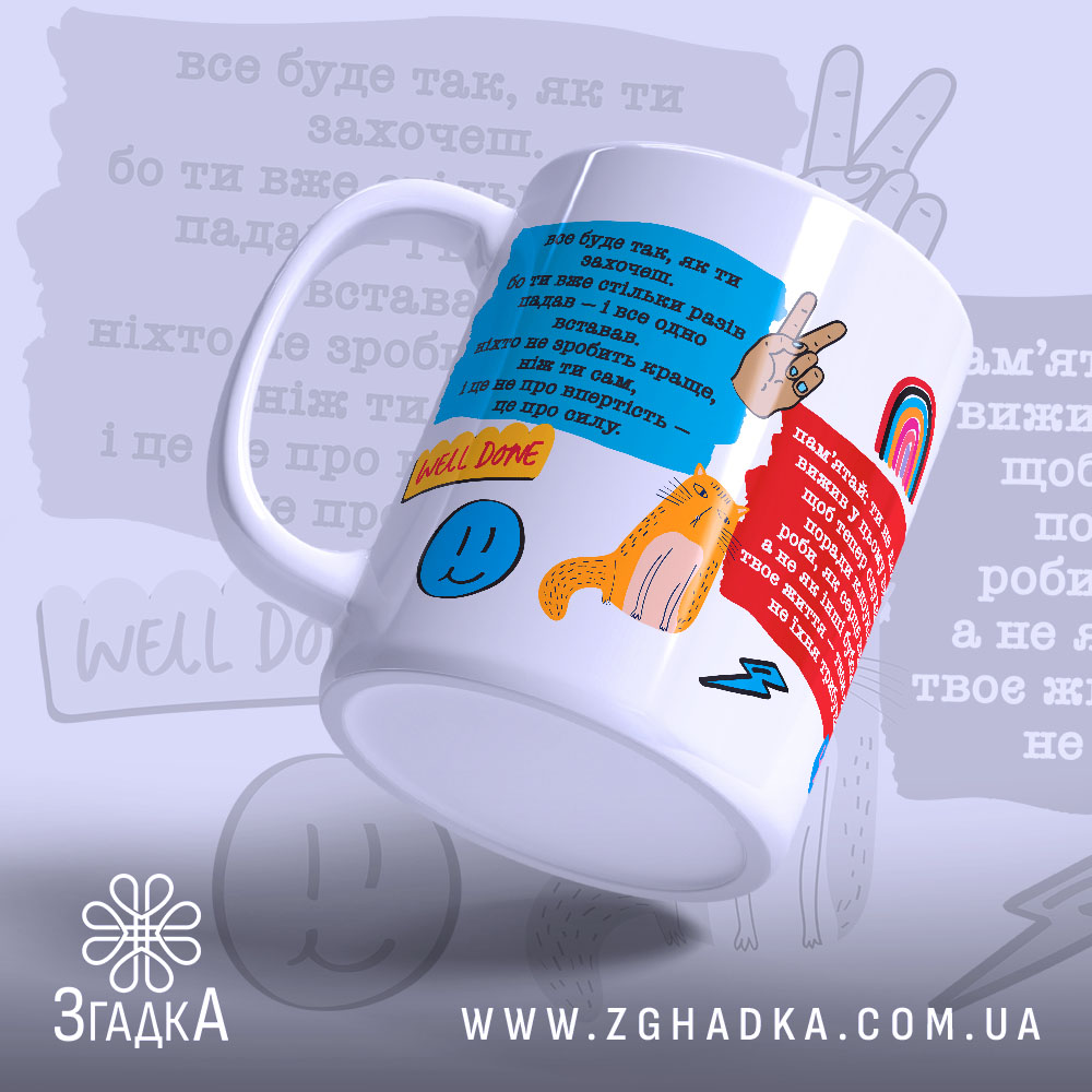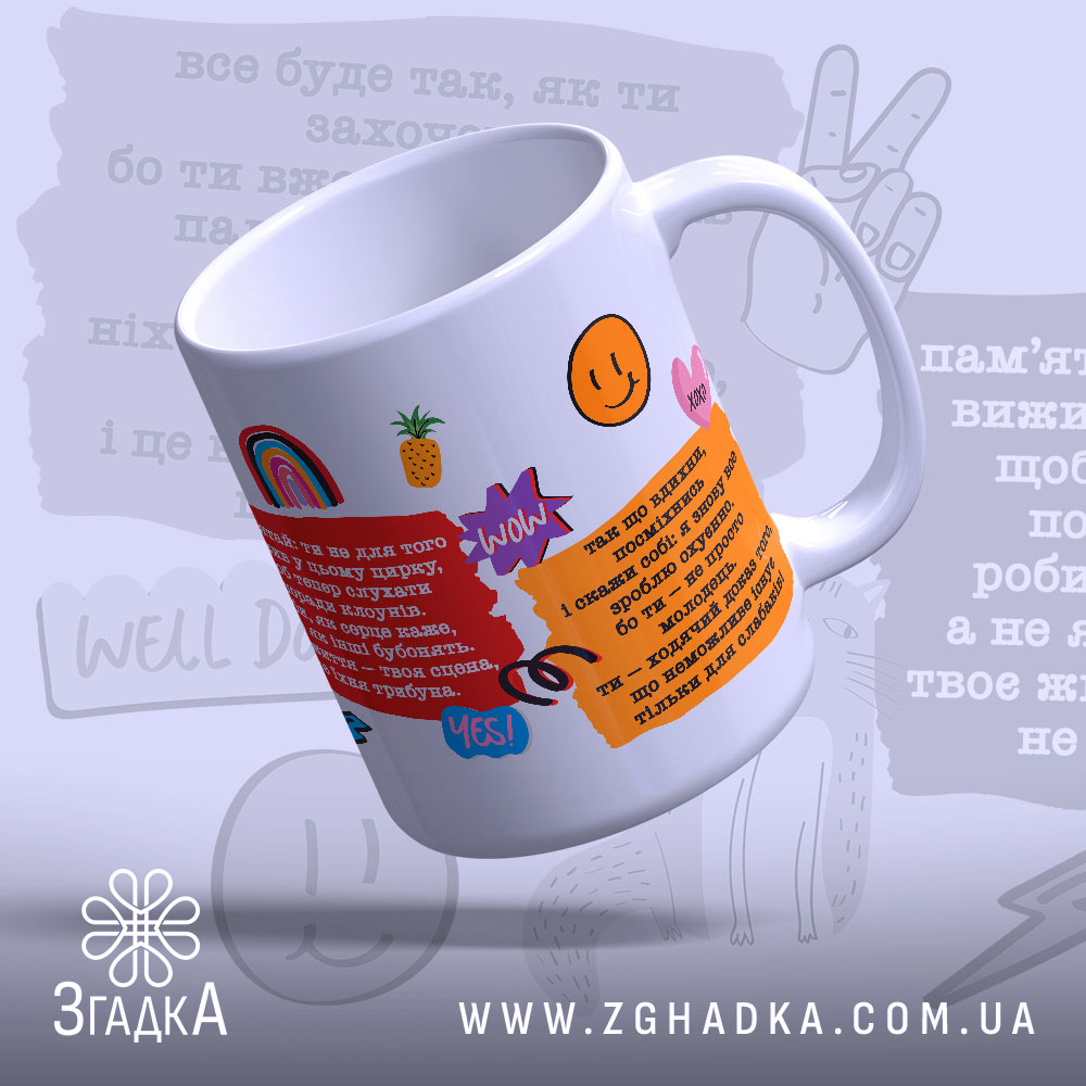 Чашка мотиваційна для настрою — це щоденне нагадування про твою силу та віру в себе. Яскравий дизайн і добрі фрази заряджають енергією навіть у похмурі дні.