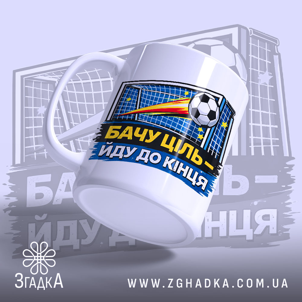 Мотивуюча чашка для футболістів, яка надихає на нові досягнення. Ідеальний подарунок для любителів спорту.