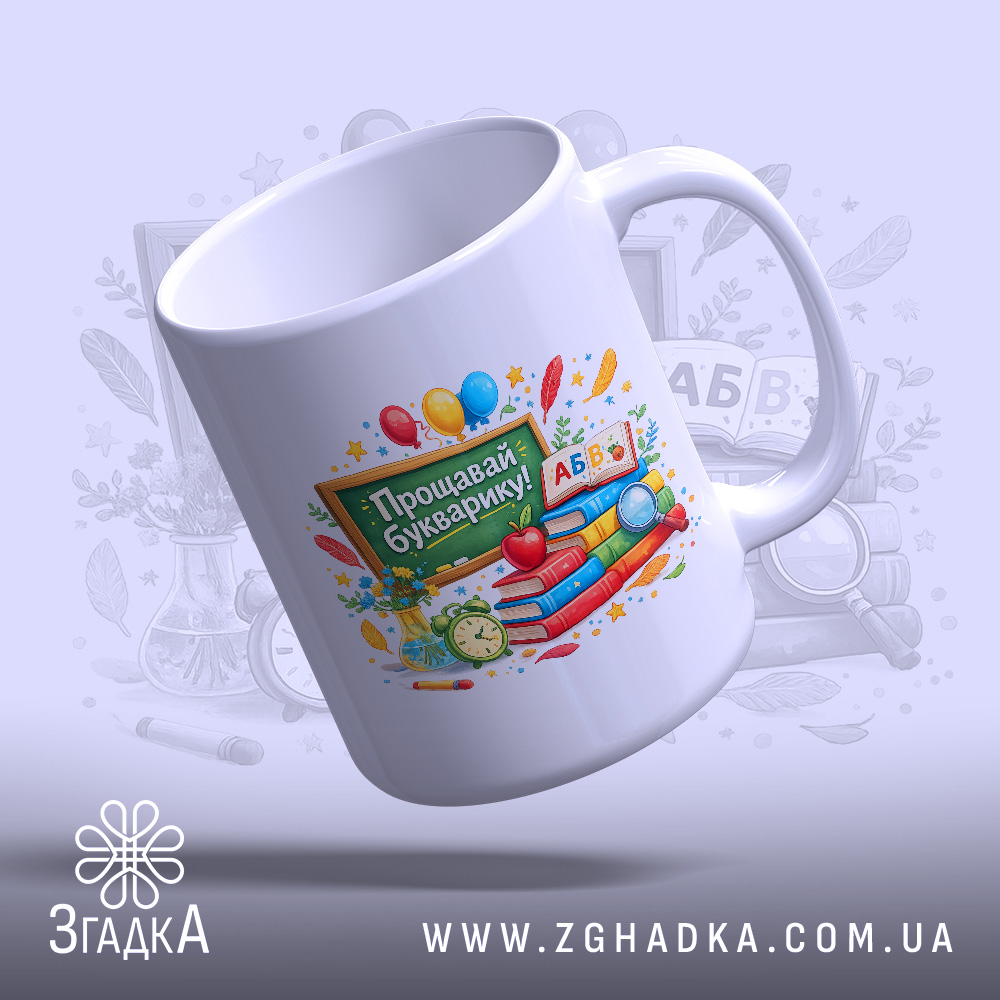 Чашка Прощавай Букварику – це не просто посуд, а символ нових починань та яскравих моментів.