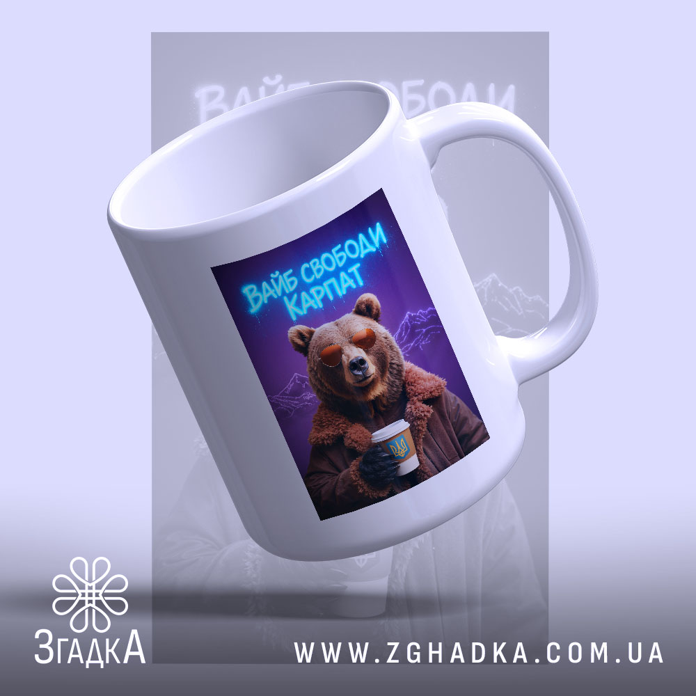 Чашка вайб свободи Карпат з ведмедем – це не просто посуд, а частинка вашого стилю та комфорту.