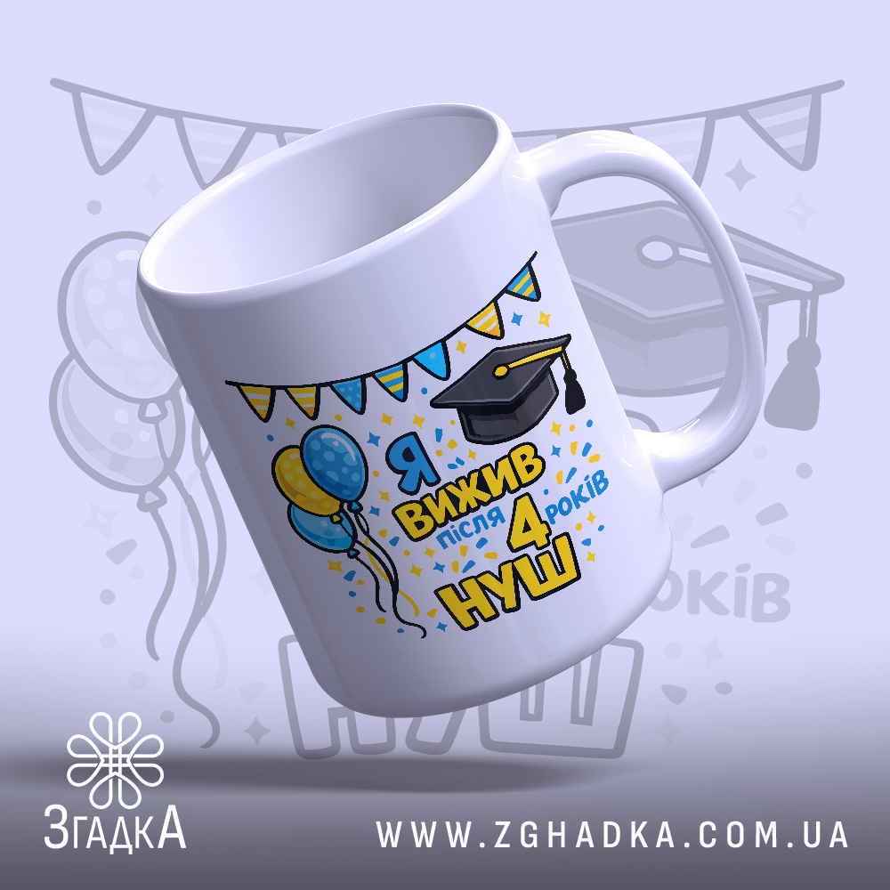 Ця чашка — ідеальний подарунок для випускників початкової школи. Яскравий дизайн та можливість індивідуального друку роблять її унікальною.