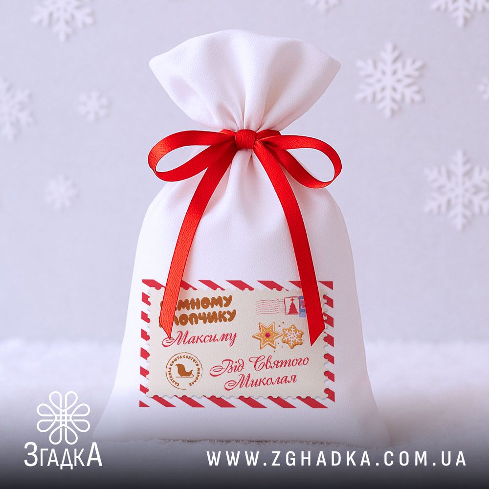 Дитячий подарунковий мішечок у стилі поштового конверта від Святого Миколая створений, щоб перетворити свято на справжнє диво. Ідеальний для солодощів, іграшок і теплих вражень!