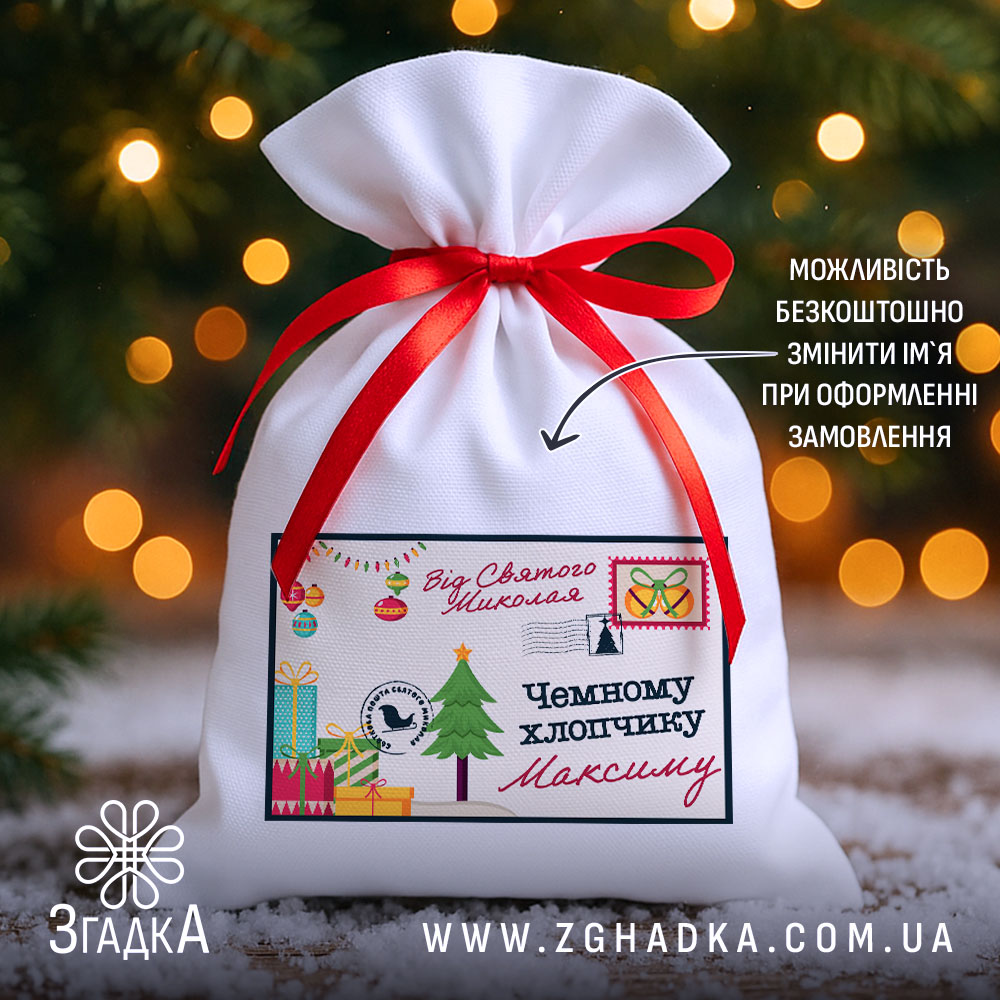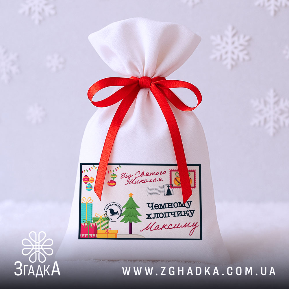 Дитячий святковий мішечок — це особливий аксесуар, який додає магії кожному подарунку. Його дизайн нагадує поштовий конверт із побажаннями від Святого Миколая. Такий мішечок створює атмосферу радості та очікування дива, особливо коли дитина знаходить власне ім’я серед святкових принтів. Це не просто паковання — це момент щирих емоцій і тепла, який залишається в пам’яті.