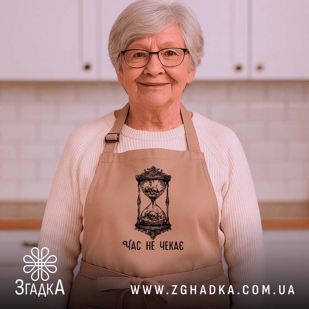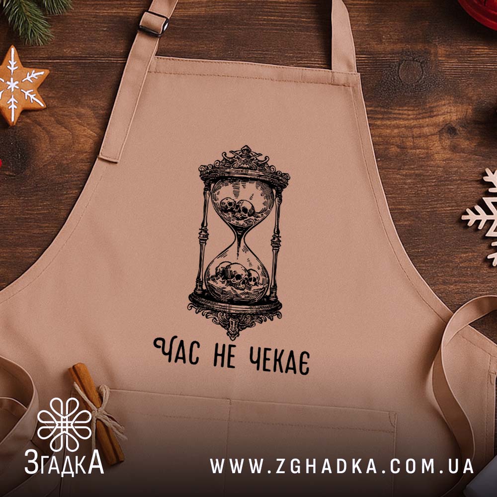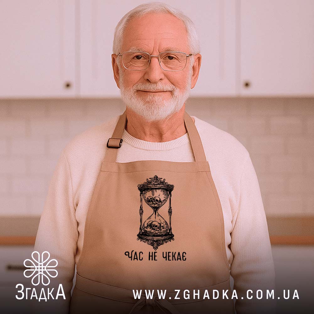 Фартух з принтом ‘Час не чекає’ – це ідеальний вибір для кухні та майстерні. Міцний, стильний і зручний у використанні.