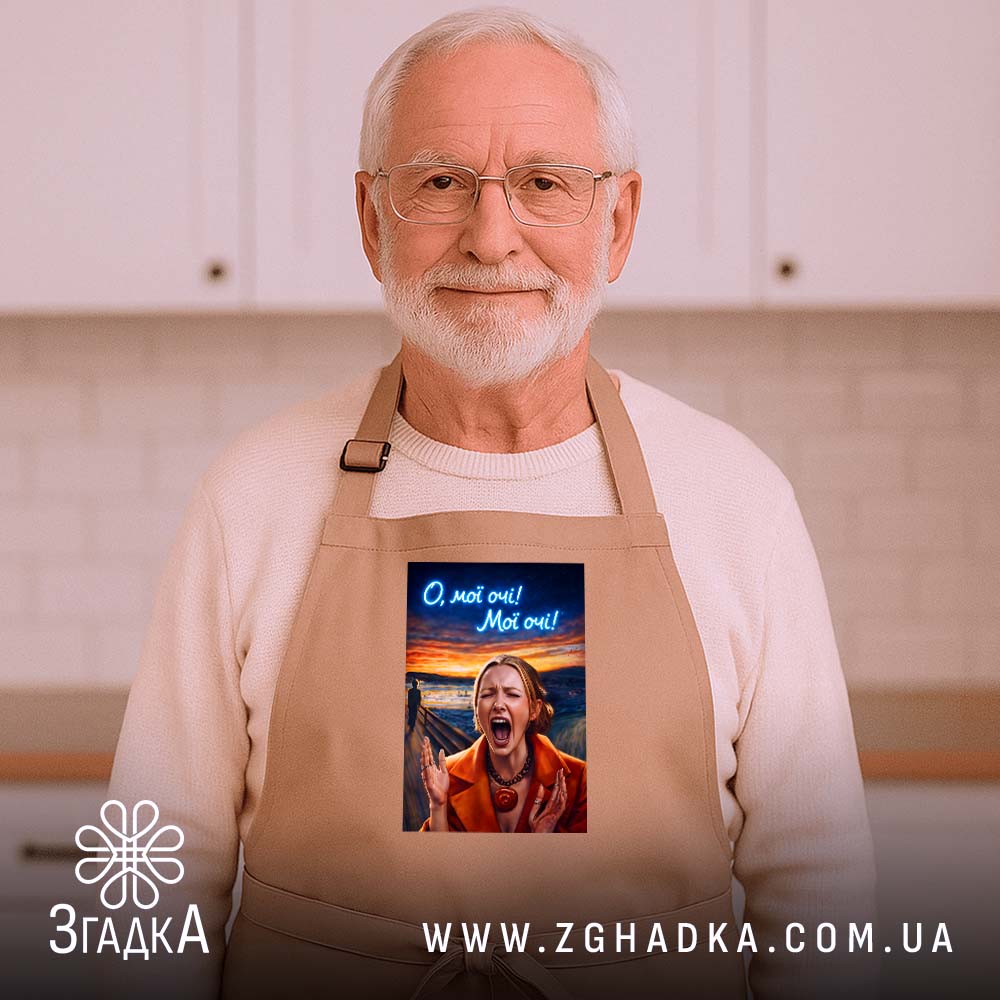 Цей фартух з принтом створений для того, щоб додати емоційного забарвлення вашому робочому дню. Він стане чудовим супутником на кухні або в майстерні, підкреслюючи вашу індивідуальність.