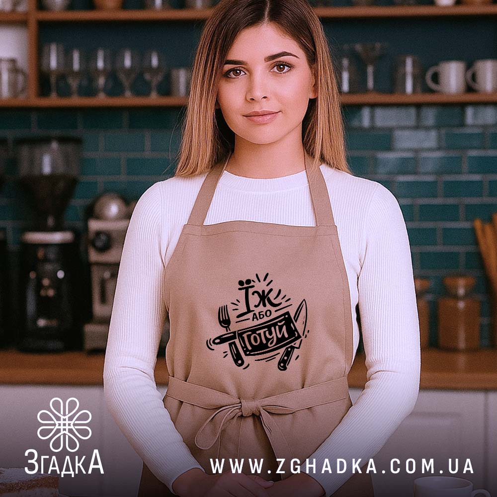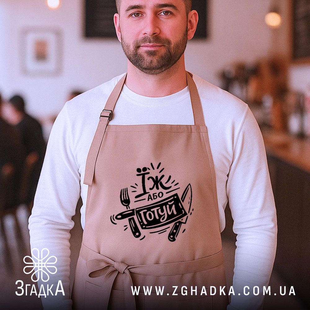 Фартух їж або готуй — ваш незамінний помічник на кухні. Стильний, зручний та практичний, він підходить для всіх.