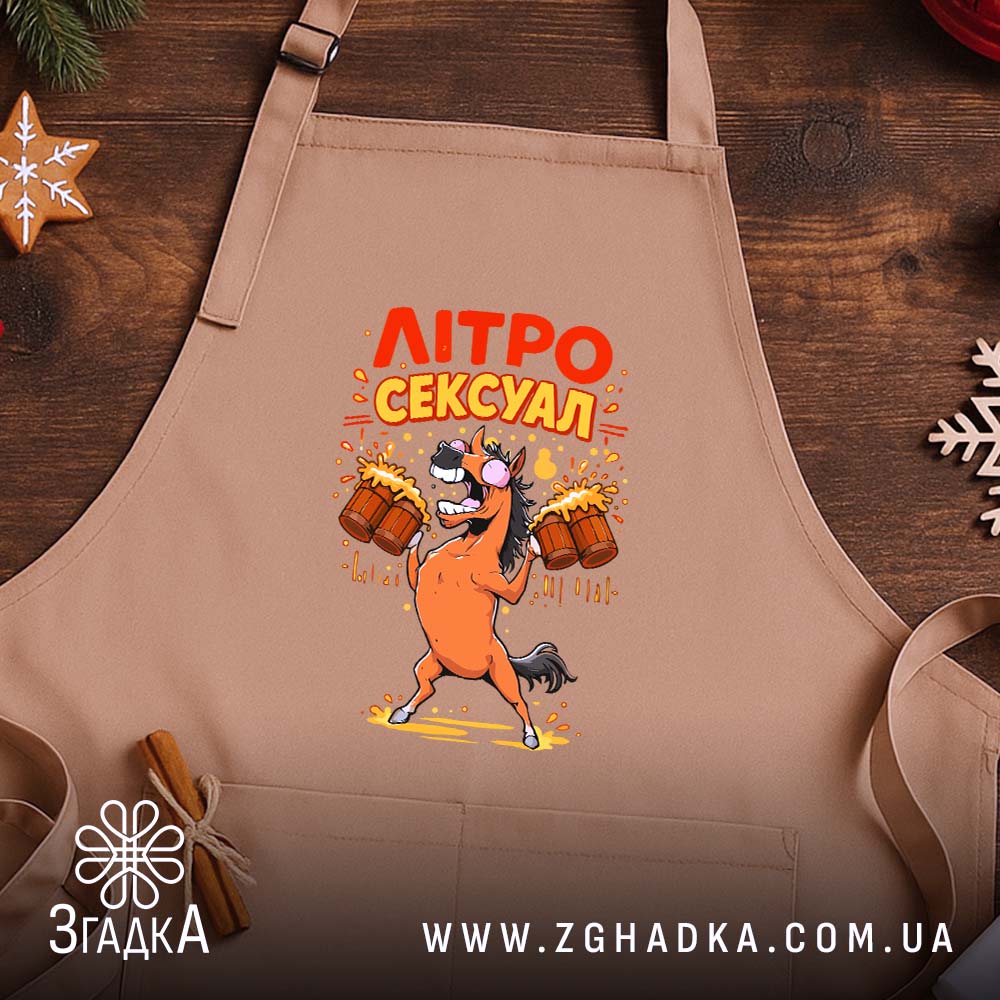 Фартух літросексуал – ідеальний подарунок для пивоманів. Яскравий дизайн та зручність у використанні роблять його незамінним на кухні.