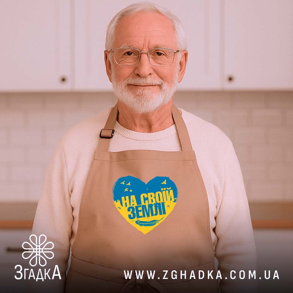 Фартух на своїй землі з патріотичним принтом – це стильний та практичний аксесуар для кожного.