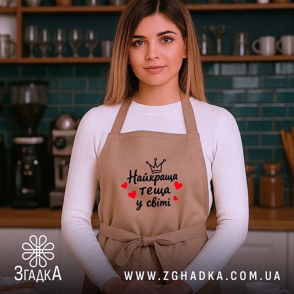Стильний фартух з принтом «Найкраща теща у світі». Ідеальний подарунок для близьких.
