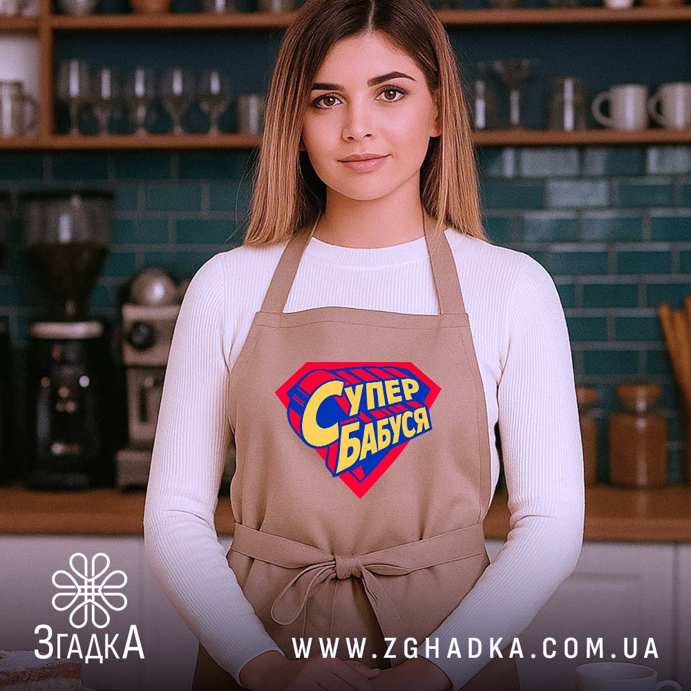 Фартух супер бабуся – це не просто одяг, а стильний аксесуар, який підкреслить вашу індивідуальність і зробить процес приготування їжі ще більш приємним.