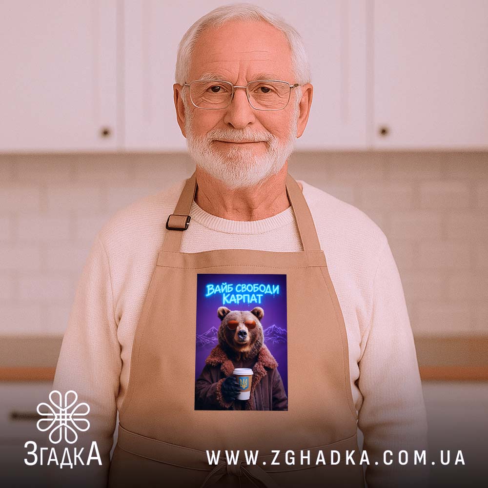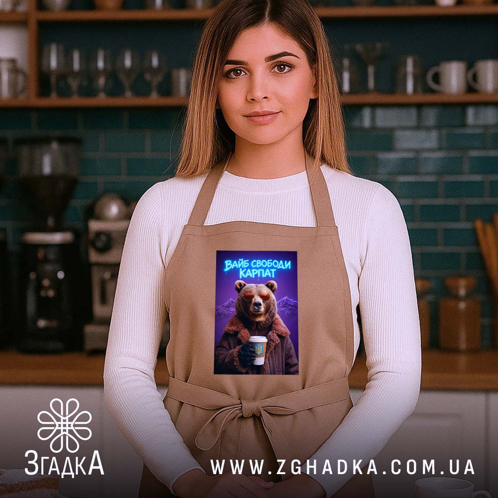 Фартух вайб свободи Карпат з ведмедем — це стильний і практичний аксесуар для кожного кухаря.