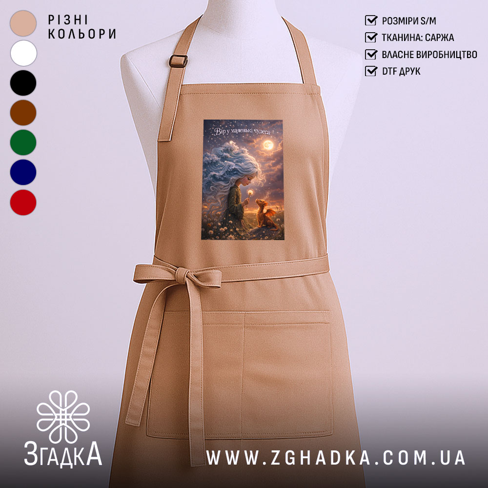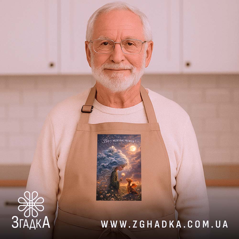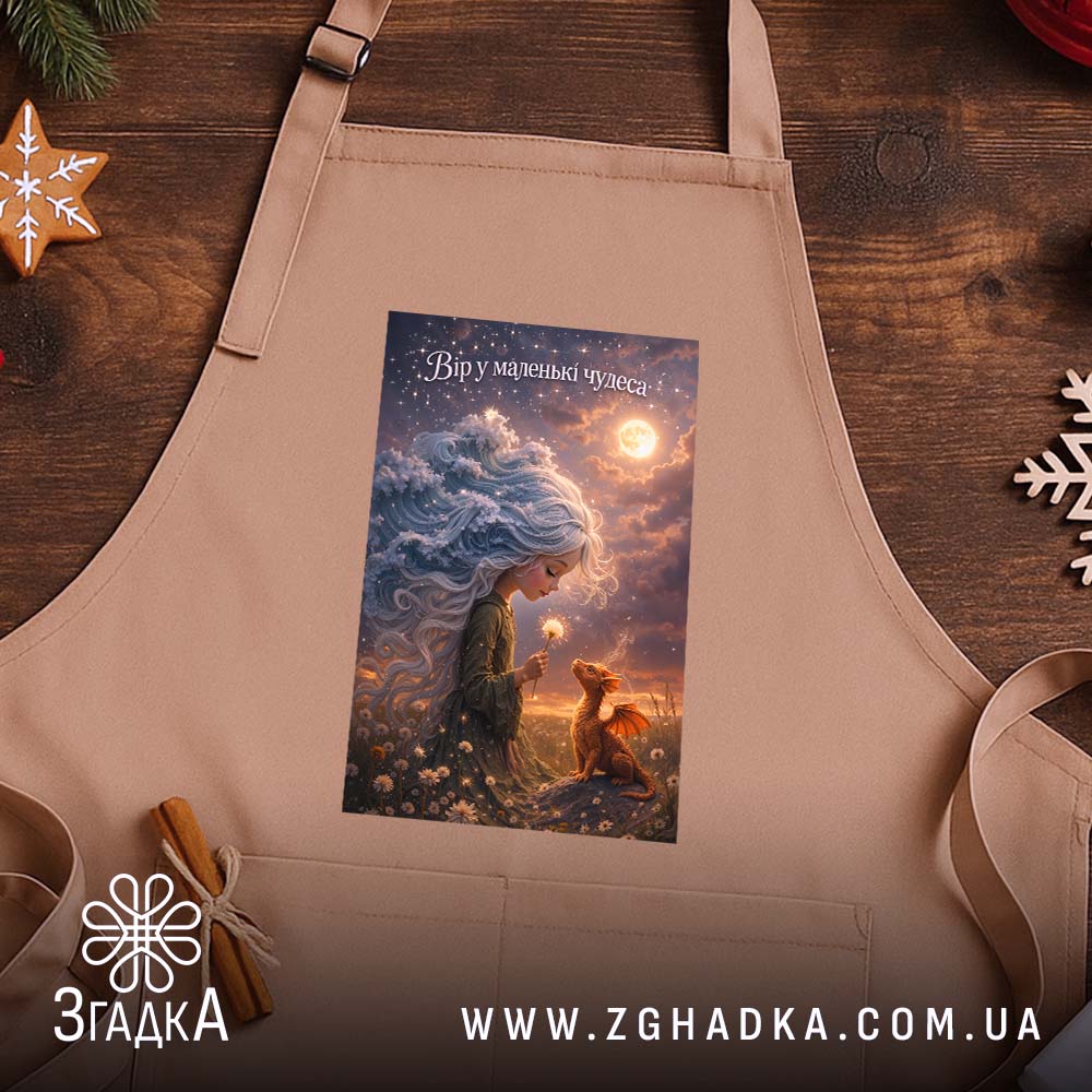 Фартух ‘Вір у маленькі чудеса’ — це не тільки практичний аксесуар, але й джерело натхнення для вашої творчості.