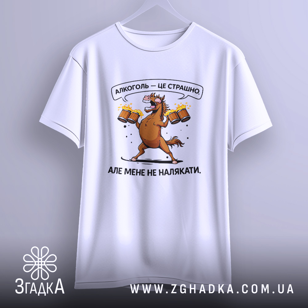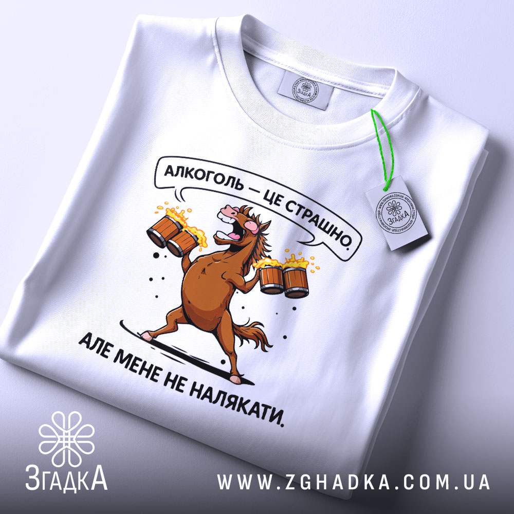 Ця футболка з іронічним принтом стане чудовим доповненням до вашого гардеробу. Висловіть свої погляди на алкоголь стильно!