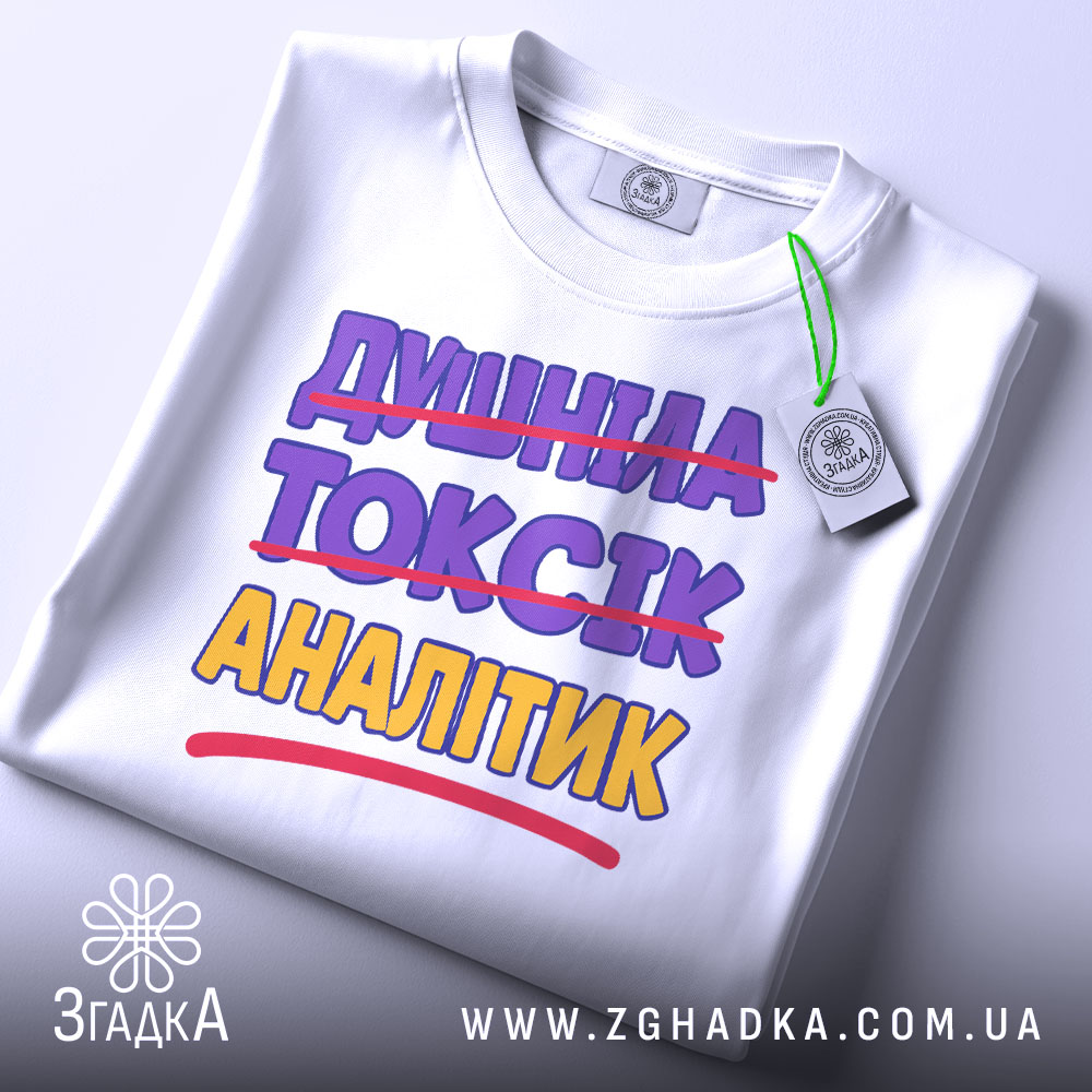 Футболка ‘аналітик не токсік’ – це не просто одяг, а вираження вашої особистості. Принт символізує позитивний підхід до життя та аналітичне мислення, що робить її ідеальним вибором для тих, хто цінує здорове спілкування.