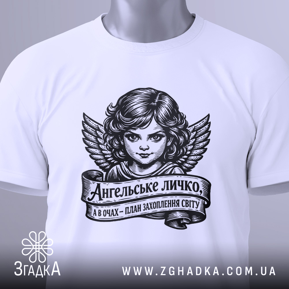 Футболка ангельське личко – це стильний і комфортний вибір для будь-якого випадку. Вона підходить для всіх, хто цінує якість та оригінальність.