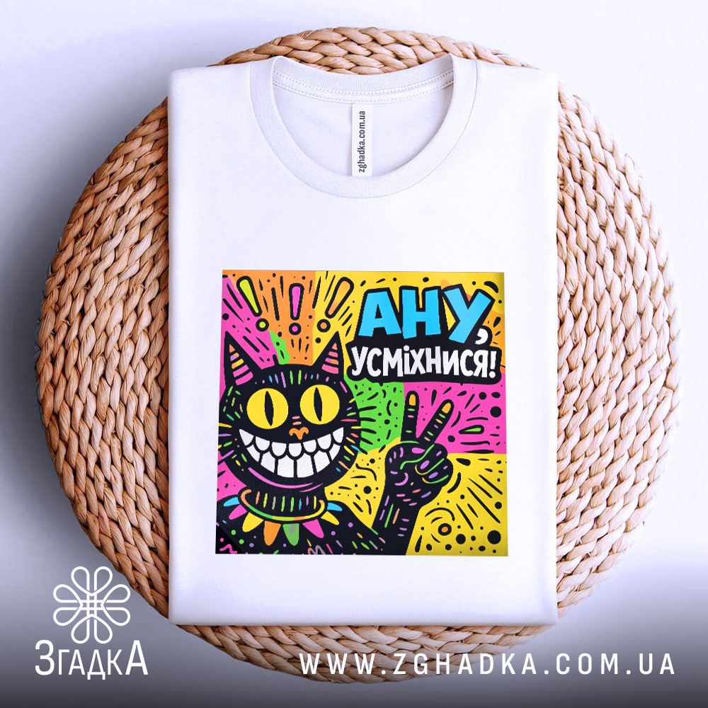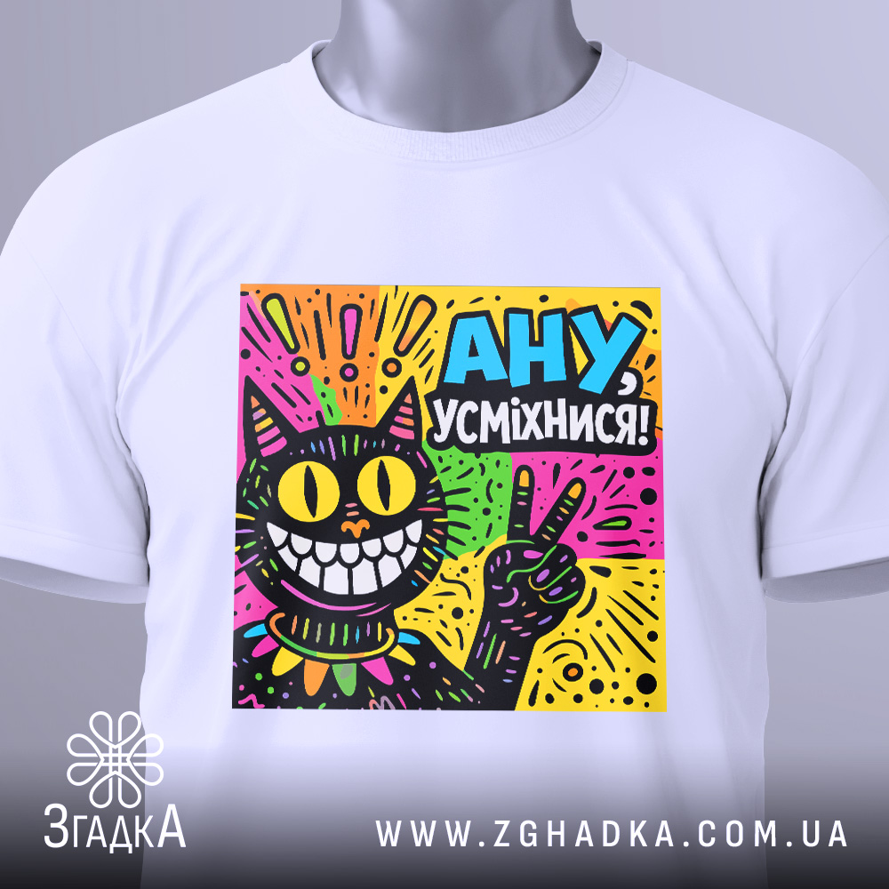 Футболка ану усміхнися – це стильний одяг з позитивним принтом. Ідеальний вибір для підняття настрою.