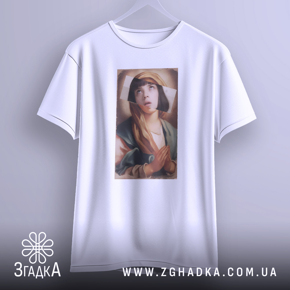 Футболка арт іронія віри виконана з урахуванням сучасних трендів. Принт символізує віру в себе та іронічний погляд на життя, що робить її ідеальним вибором для творчих особистостей.