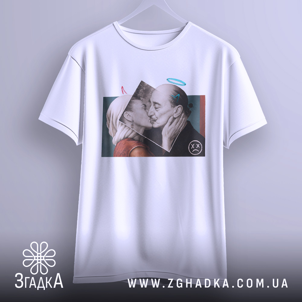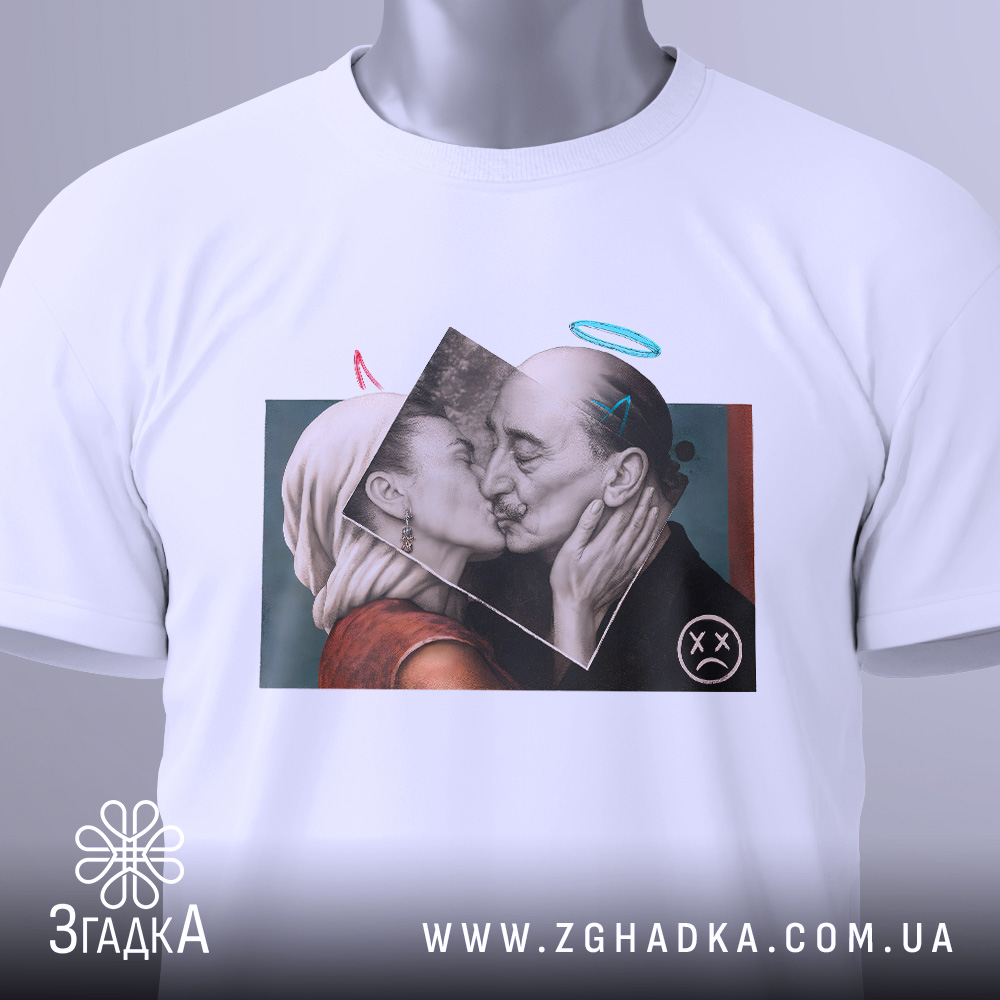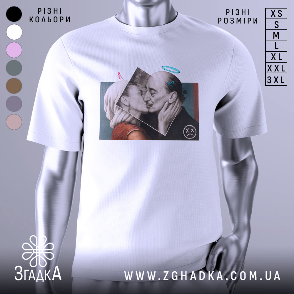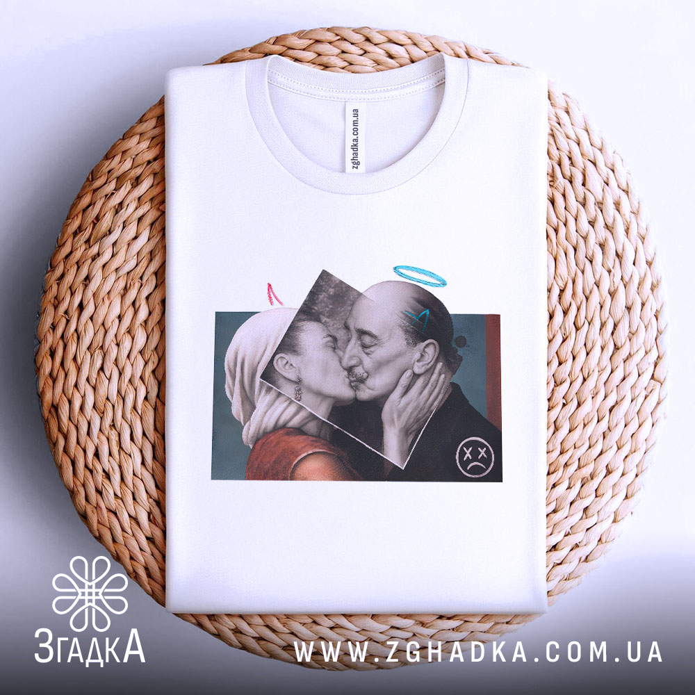 Ця футболка виготовлена з високоякісних матеріалів і має унікальний принт, що передає глибокі почуття. Вона стане чудовим доповненням до вашого стилю, підкреслюючи вашу індивідуальність і любов до мистецтва.