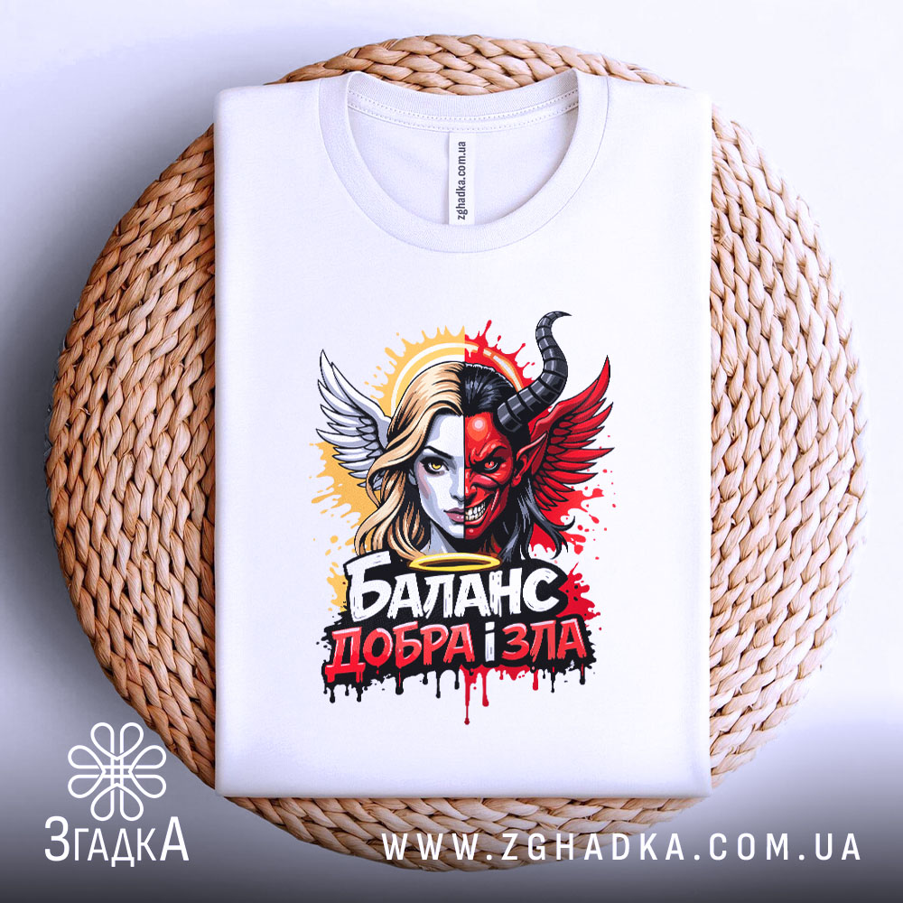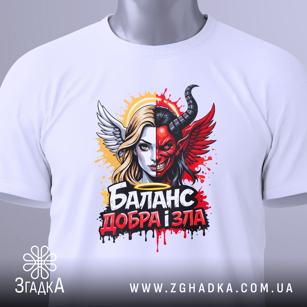 Футболка баланс добра зла – це не просто одяг, а вираження вашої індивідуальності. Обирайте стиль, комфорт і глибокий зміст у кожному дні.