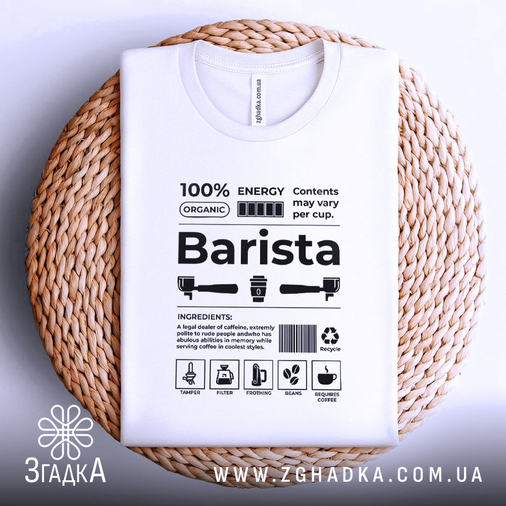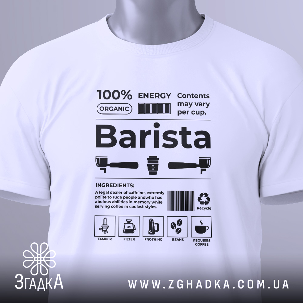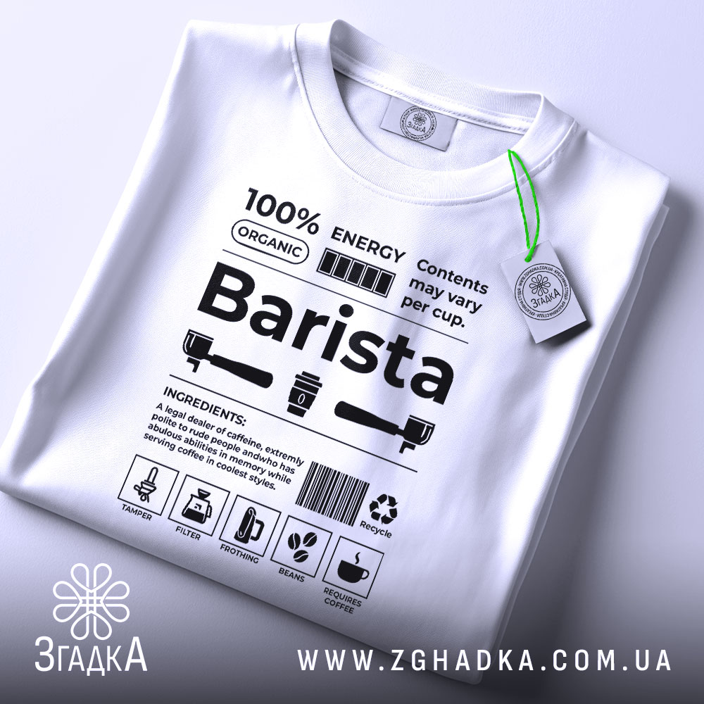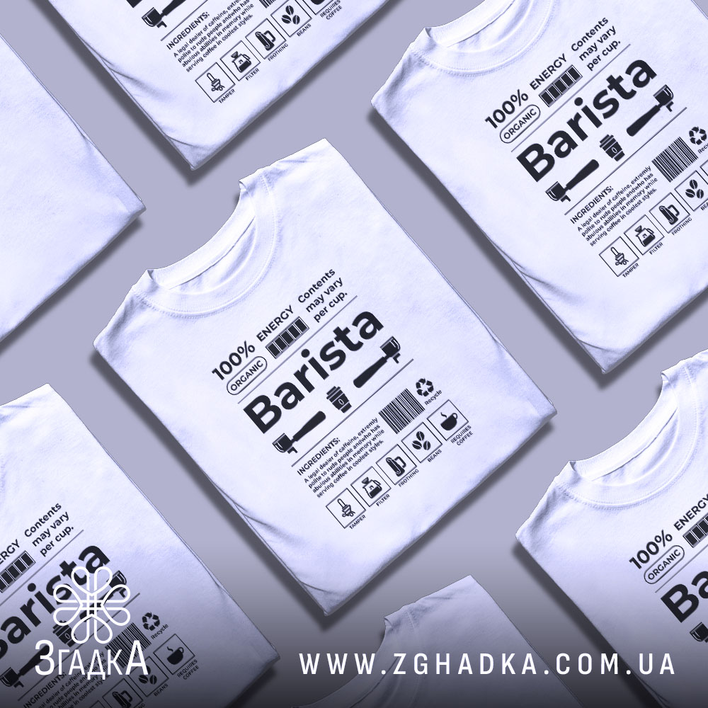 Футболка бариста стиль – це поєднання сучасного дизайну та класичних елементів. Принт на футболці символізує любов до кави та творчість, що надихає на нові звершення.