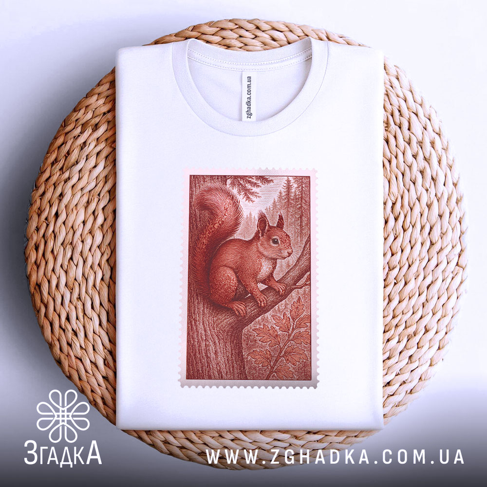 Ця футболка виконана з високоякісних матеріалів, що забезпечують комфорт і стиль. Принт з білкою символізує зв’язок з природою і позитивний настрій.