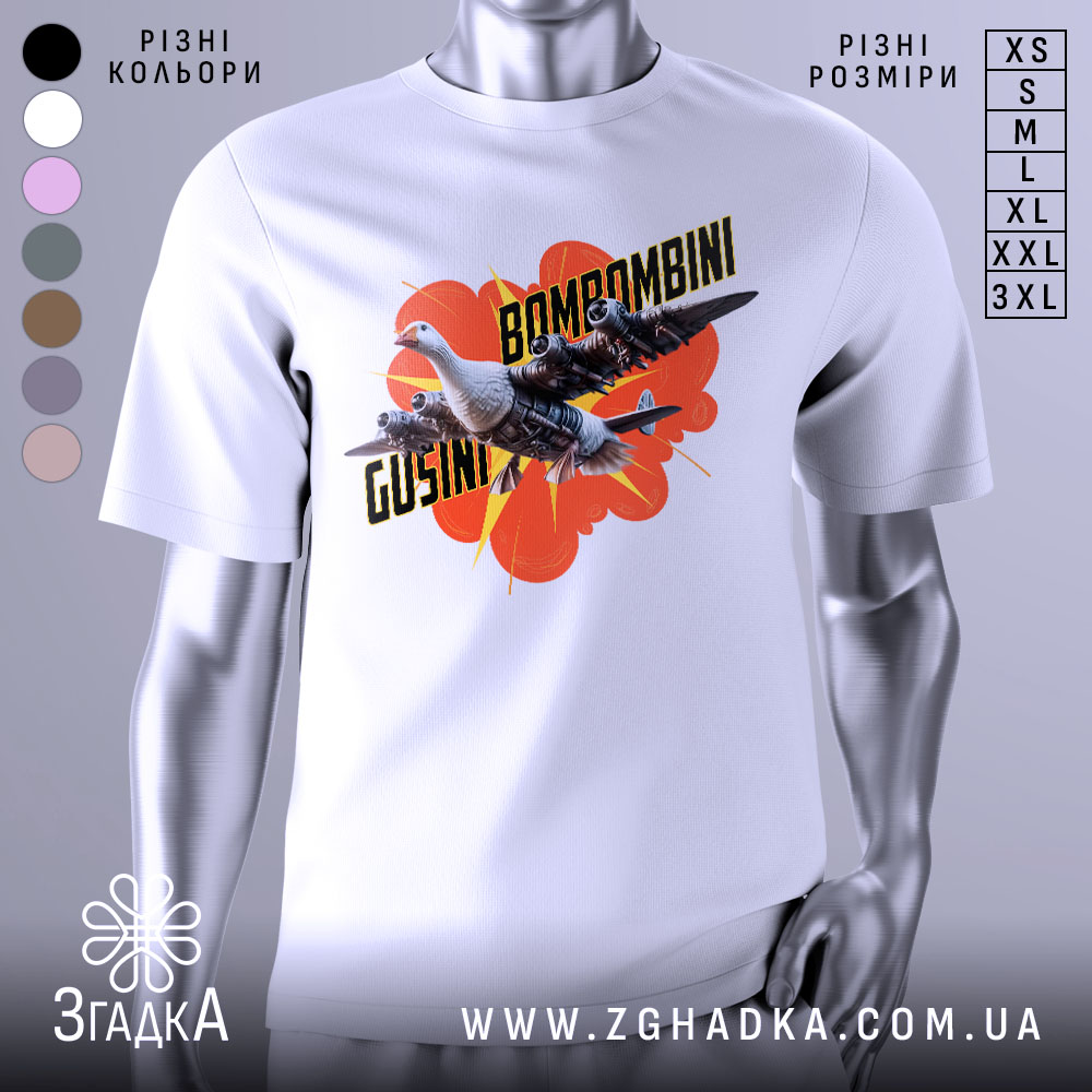 Футболка Bombombini Gusini – це не просто одяг, а вираження вашого стилю. Принт на футболці символізує позитив та креативність, що робить її ідеальним вибором для повсякденного носіння.