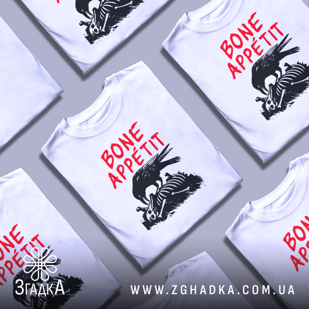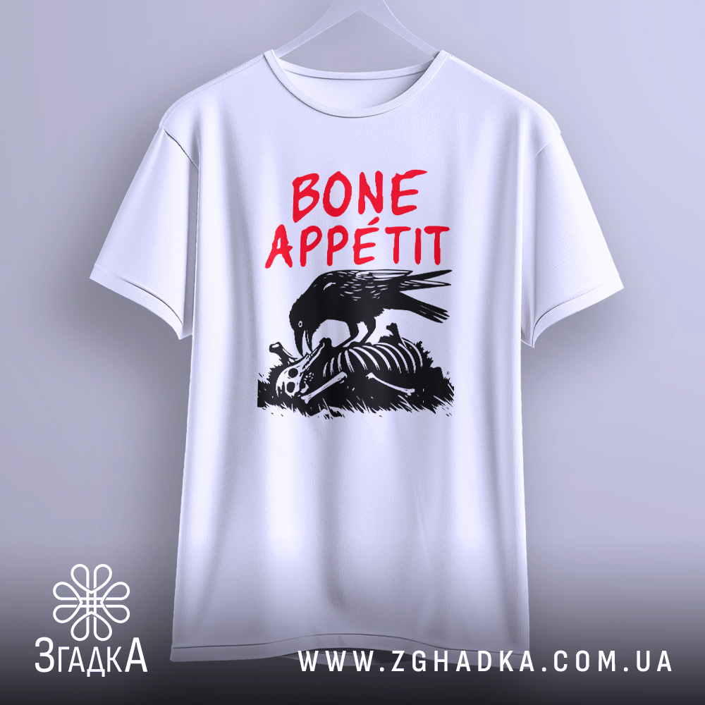 Футболка Bone Appétit з оригінальним принтом стане яскравим акцентом у вашому стилі. Виготовлена з якісних матеріалів, вона забезпечує комфорт та довговічність.