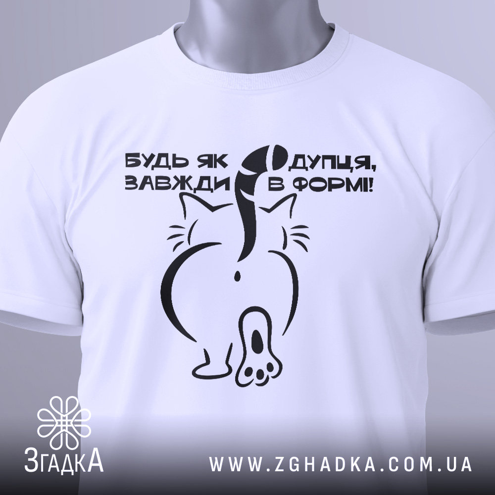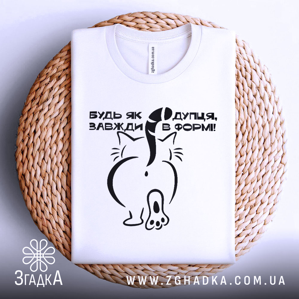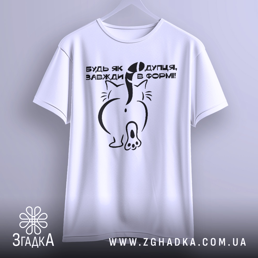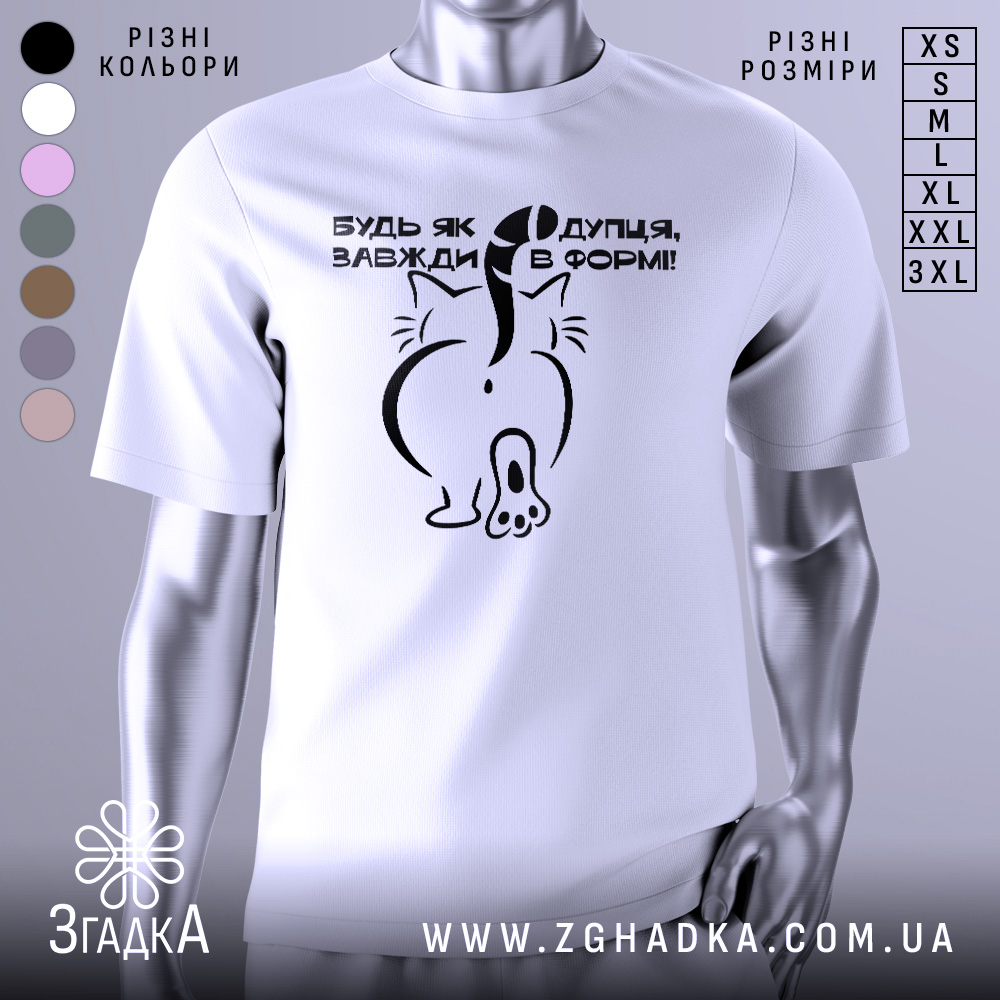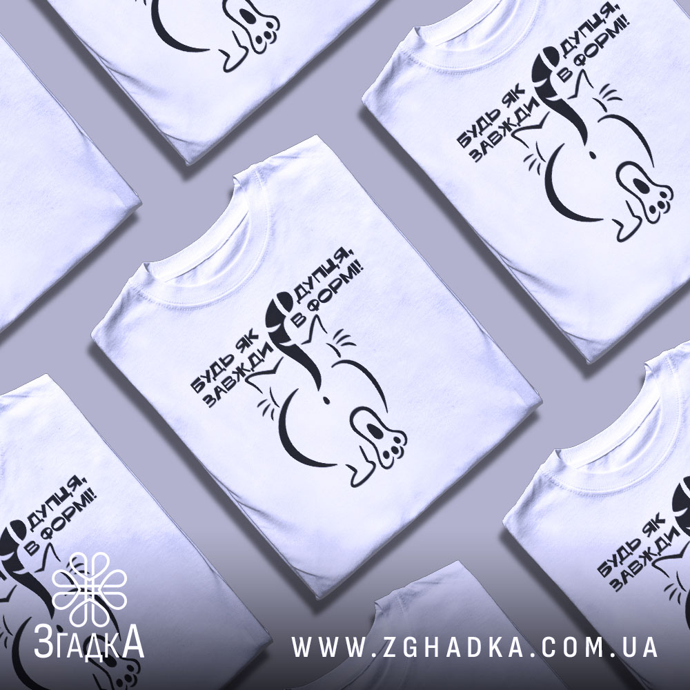 Футболка ‘будь як дупця’ – це яскравий акцент у вашому гардеробі. Вона підходить для будь-яких випадків і стане чудовим подарунком.