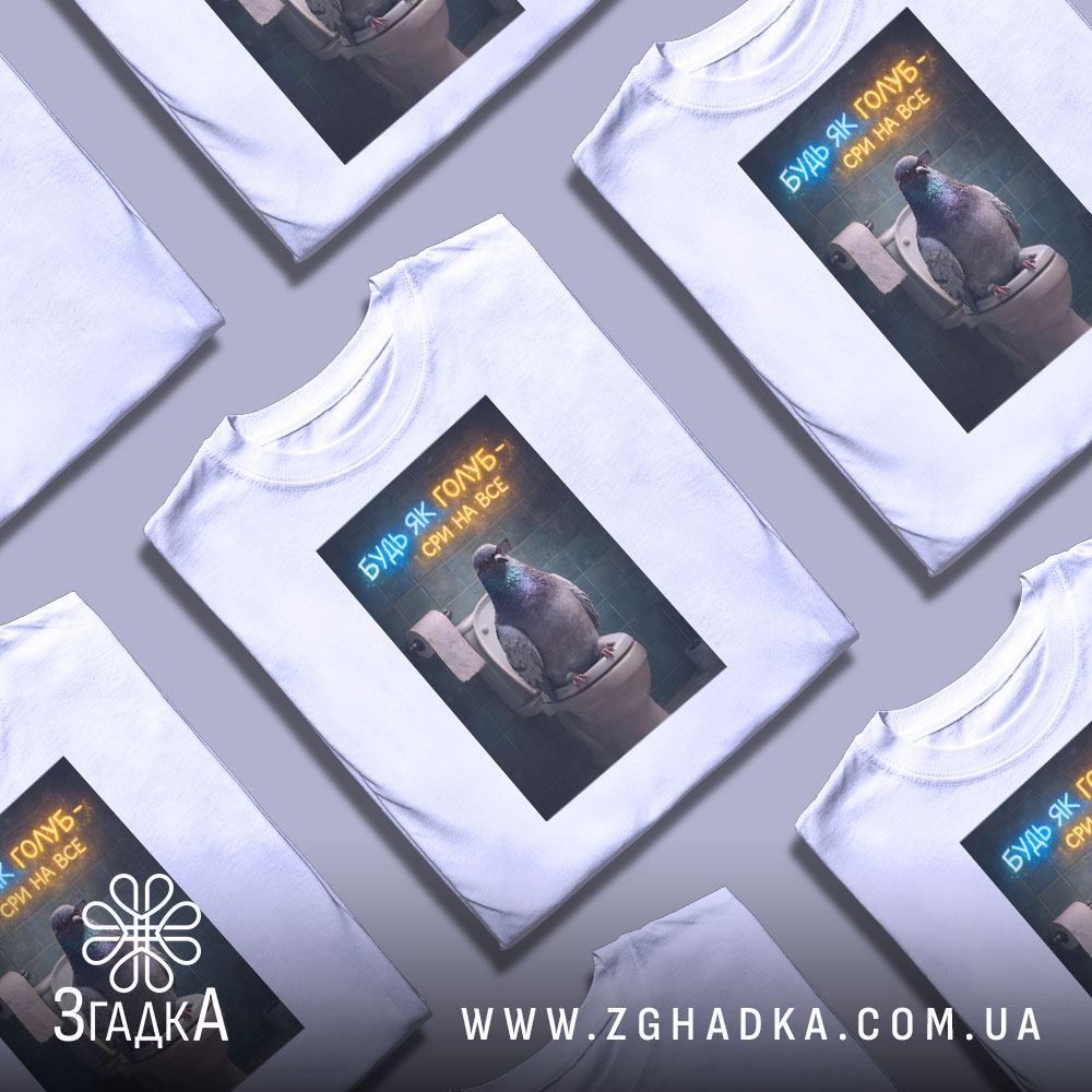 Футболка будь як голуб – це не просто одяг, а символ стилю, комфорту та внутрішнього спокою. Оберіть її для себе або як подарунок, і ви не пошкодуєте!