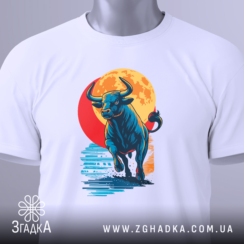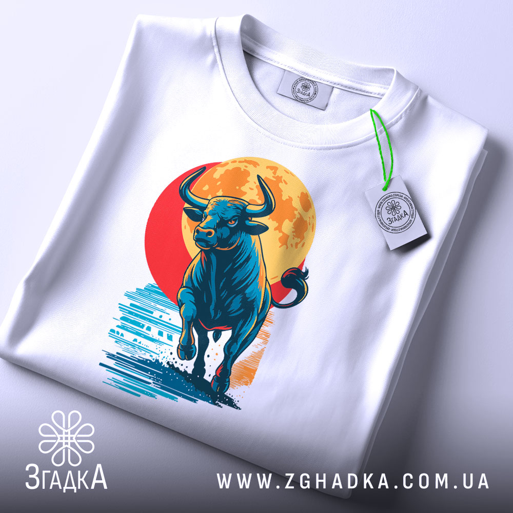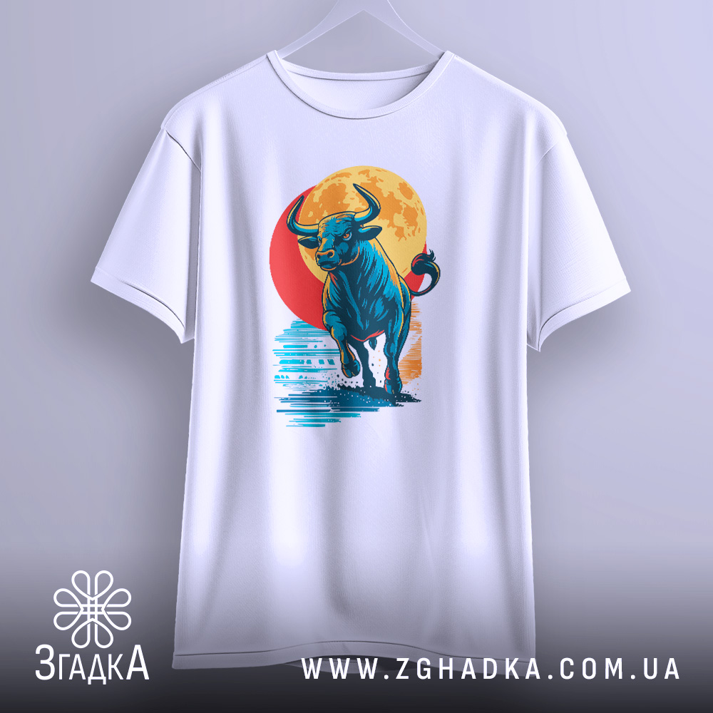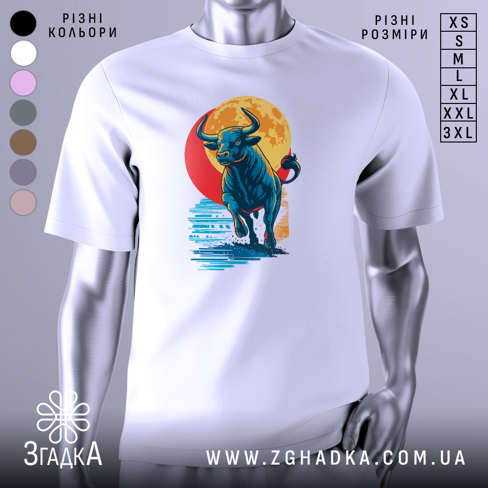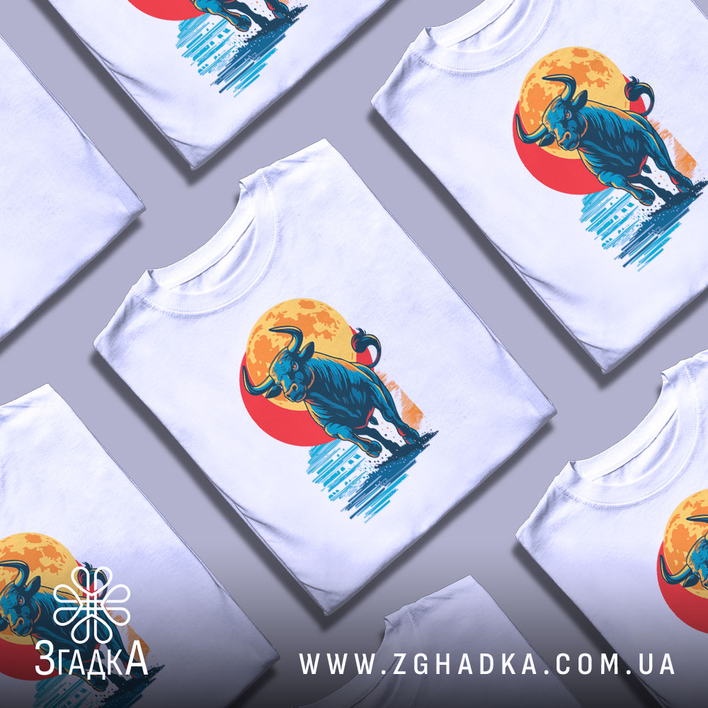 Ця футболка виготовлена з м’якого матеріалу та має оригінальний принт з биком, що символізує енергію та силу. Вона стане чудовим доповненням до вашого гардеробу, підкреслюючи вашу індивідуальність та активний спосіб життя.