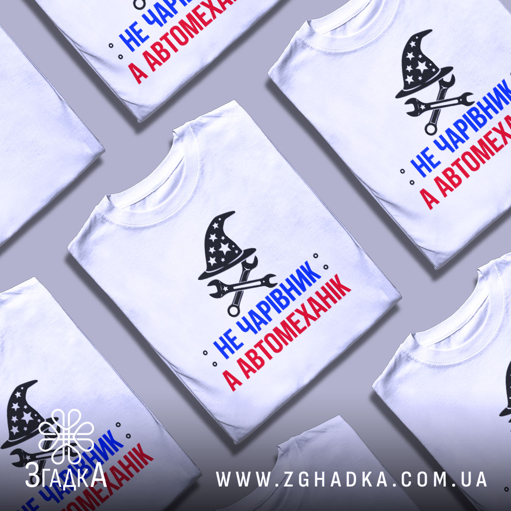 Ця футболка з принтом ‘чарівник автомеханік’ поєднує в собі магію та техніку. Вона викликає позитивні емоції та стане чудовим доповненням до вашого гардеробу. Не пропустіть можливість виділитися!