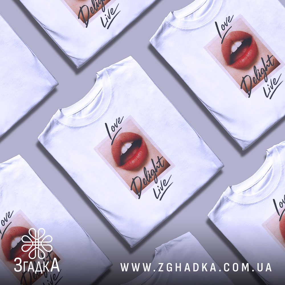 Ця футболка з принтом червоних губ привертає увагу і додає енергії вашому образу. Відчуйте себе впевнено і стильно, носіть її на прогулянки або зустрічі з друзями!
