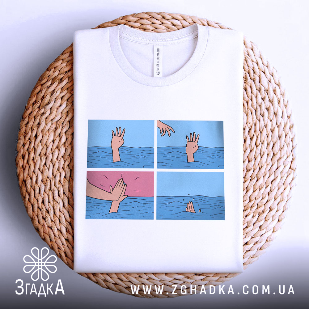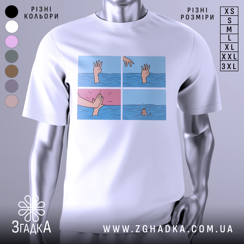 Ця футболка виготовлена з якісних матеріалів та має оригінальний принт, що відображає чорний гумор. Вона ідеально підходить для тих, хто цінує іронію та нестандартний підхід до життя.