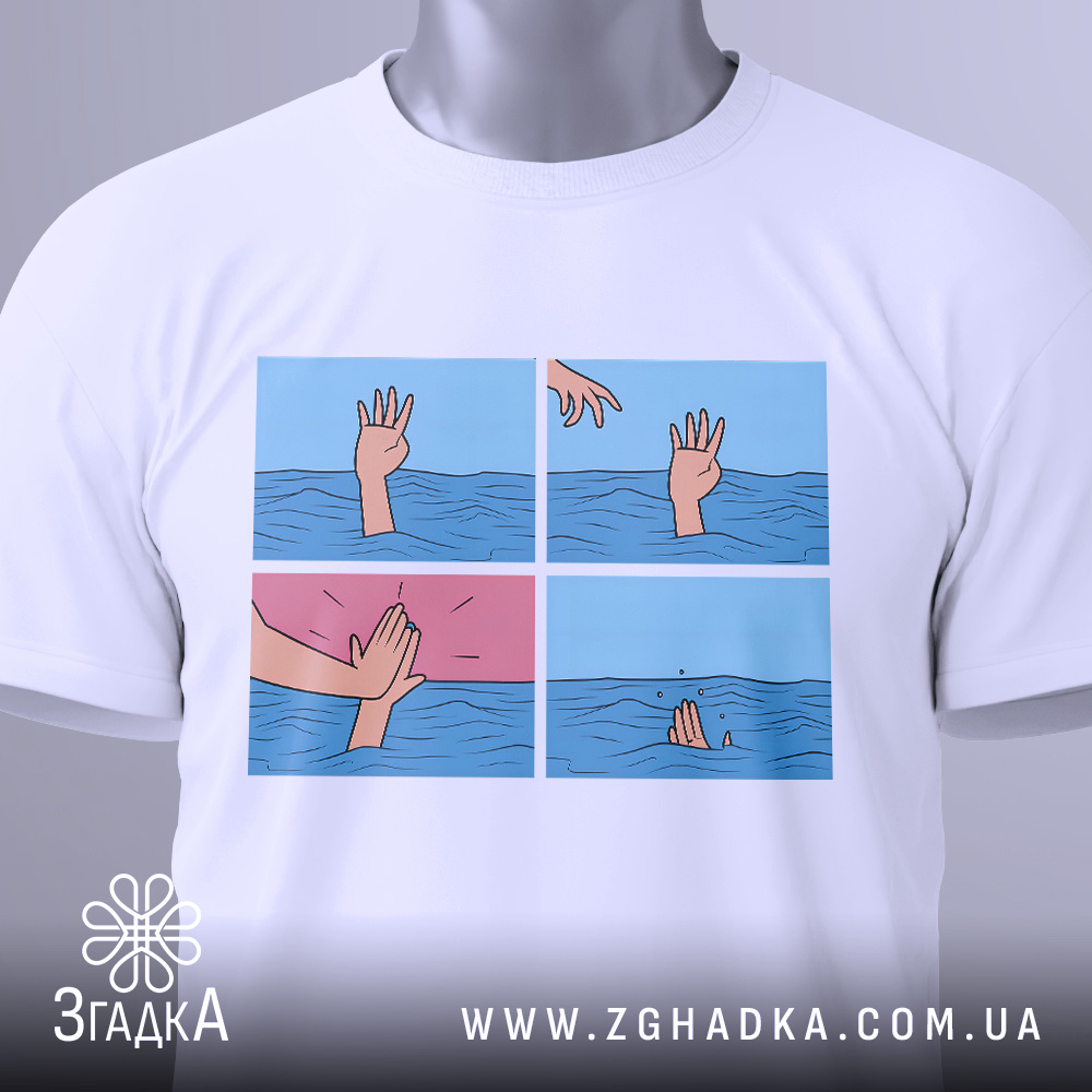 На принті зображено іронічний малюнок, який викликає усмішку та роздуми. Ця футболка стане чудовим доповненням до вашого гардеробу, підкреслюючи ваш унікальний стиль. Не пропустіть можливість виділитися!