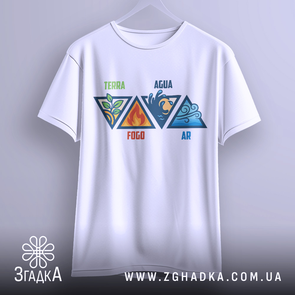 Футболка чотири стихії з унікальним дизайном. Висока якість матеріалів та комфортна посадка.