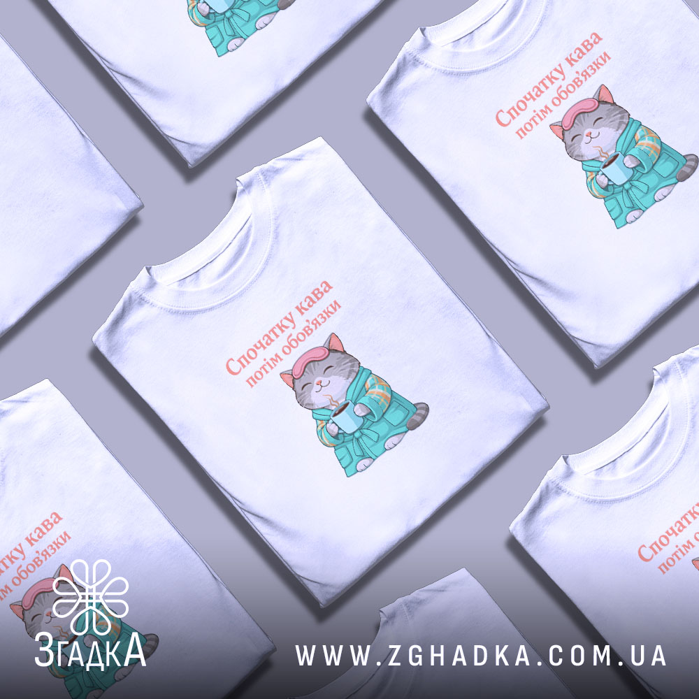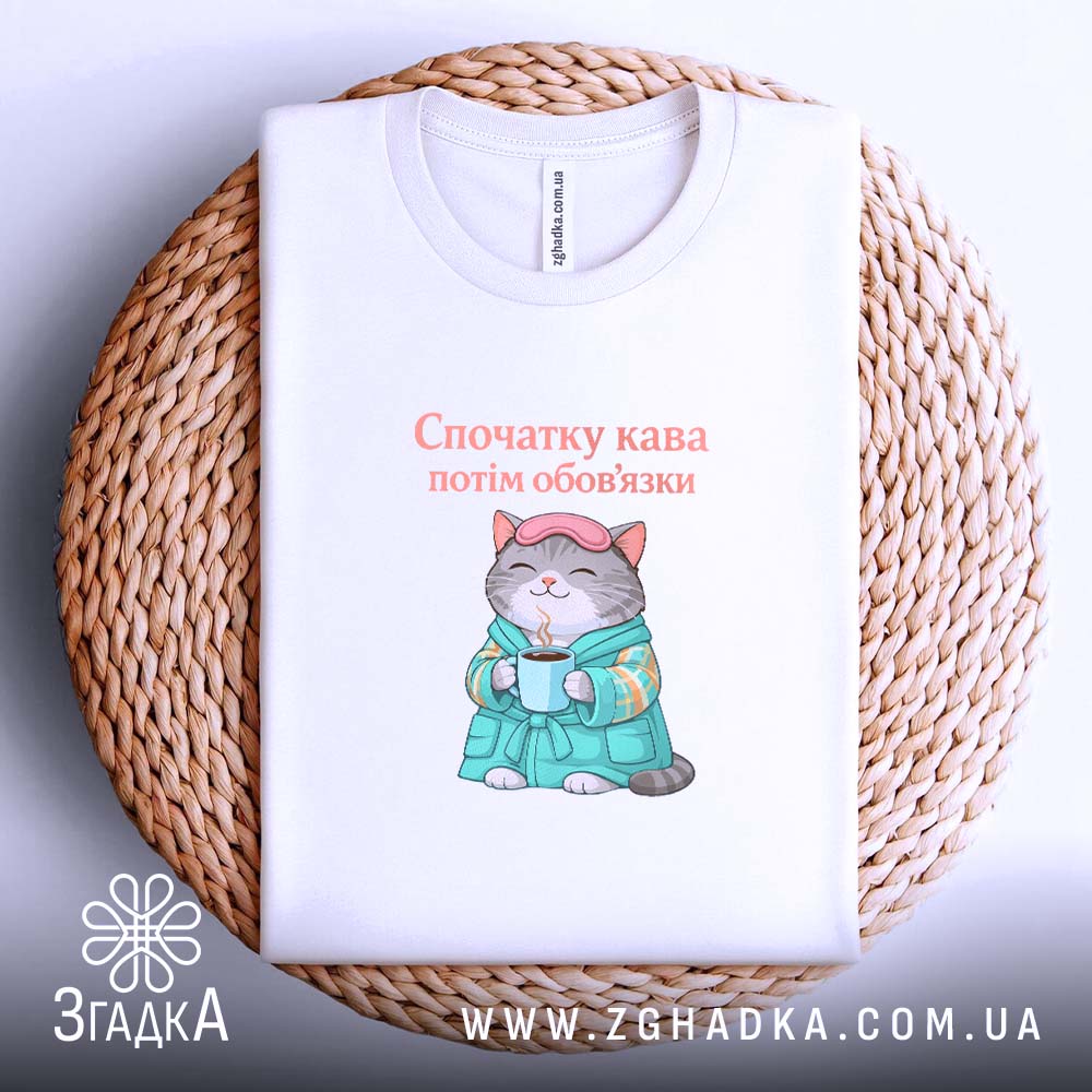 Футболка cпочатку кава потім обов’язки – це стильний та комфортний вибір для кожного дня.