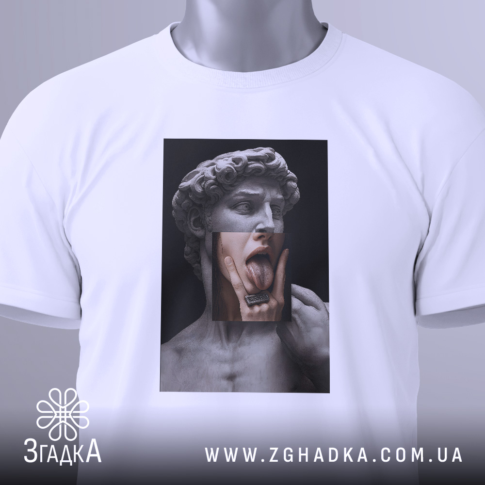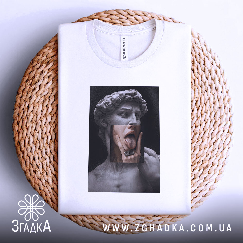 Футболка Давид арт – це ідеальний вибір для тих, хто хоче поєднати комфорт з оригінальністю. Не втрачайте можливість стати частиною мистецтва!