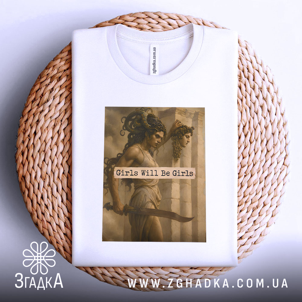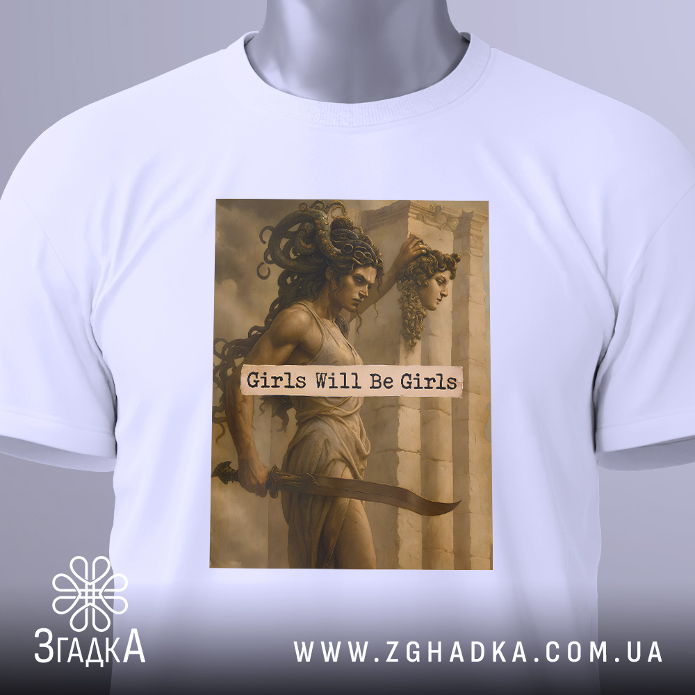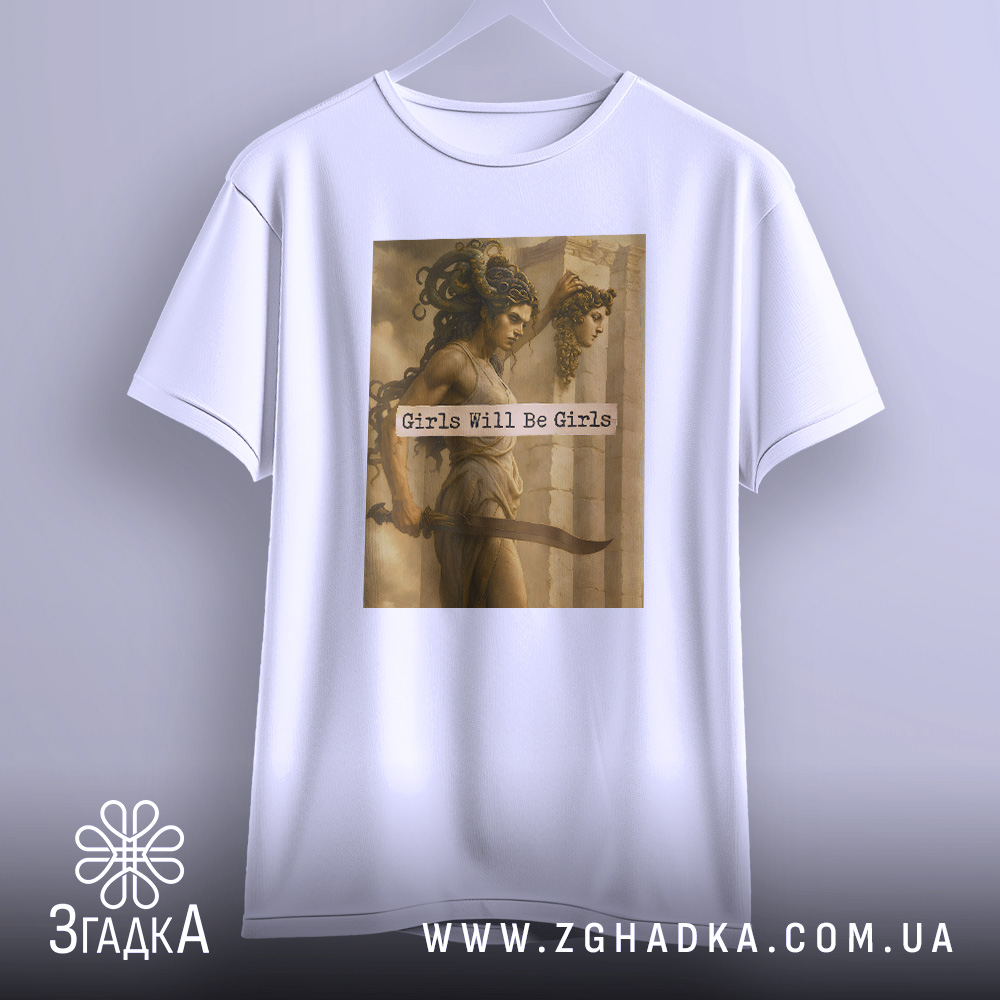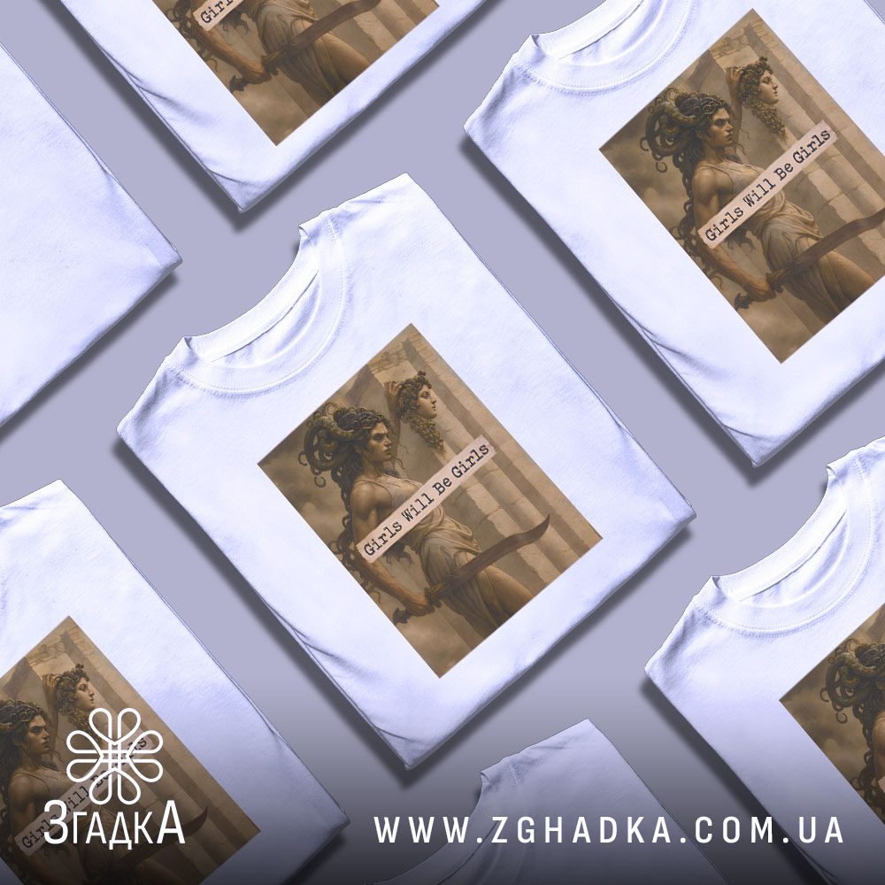 Ця футболка виготовлена з якісних матеріалів, що забезпечують комфорт та стиль. Принт символізує силу дівчат, їхню незалежність та прагнення до самовираження. Вона стане ідеальним вибором для будь-якого випадку.