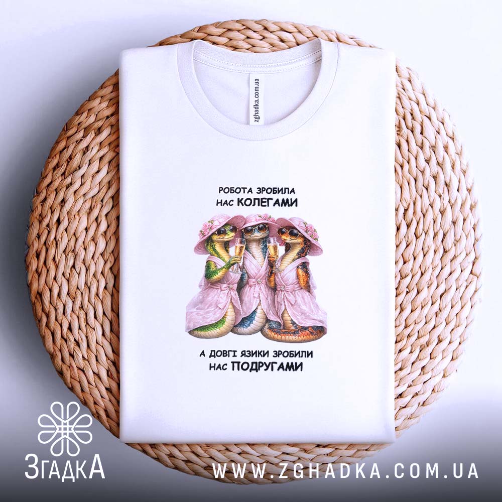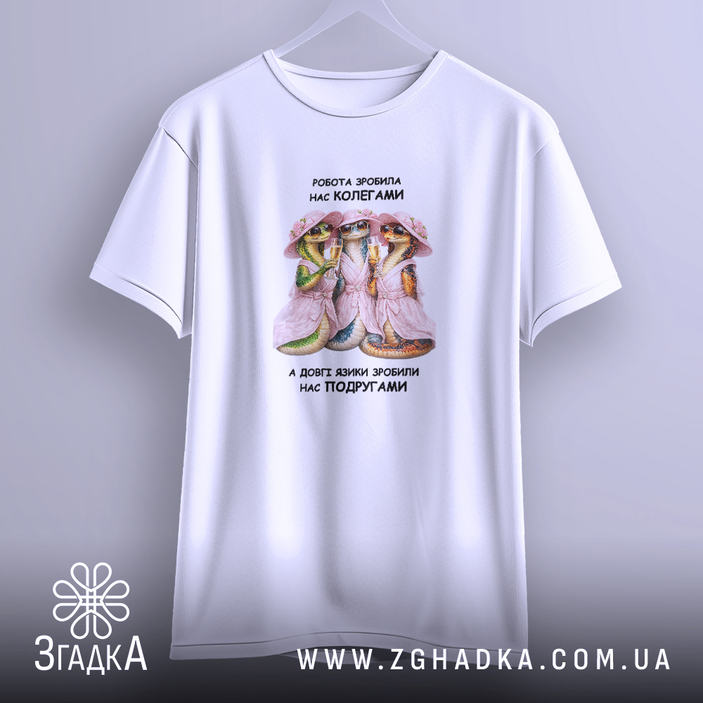 Кумедна футболка з яскравим принтом для подруги-колеги. Ідеальний подарунок для будь-якого випадку.