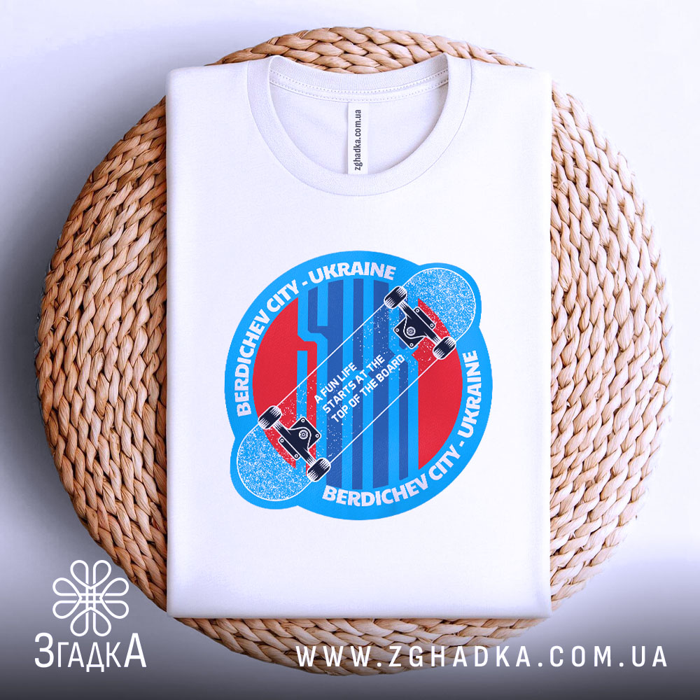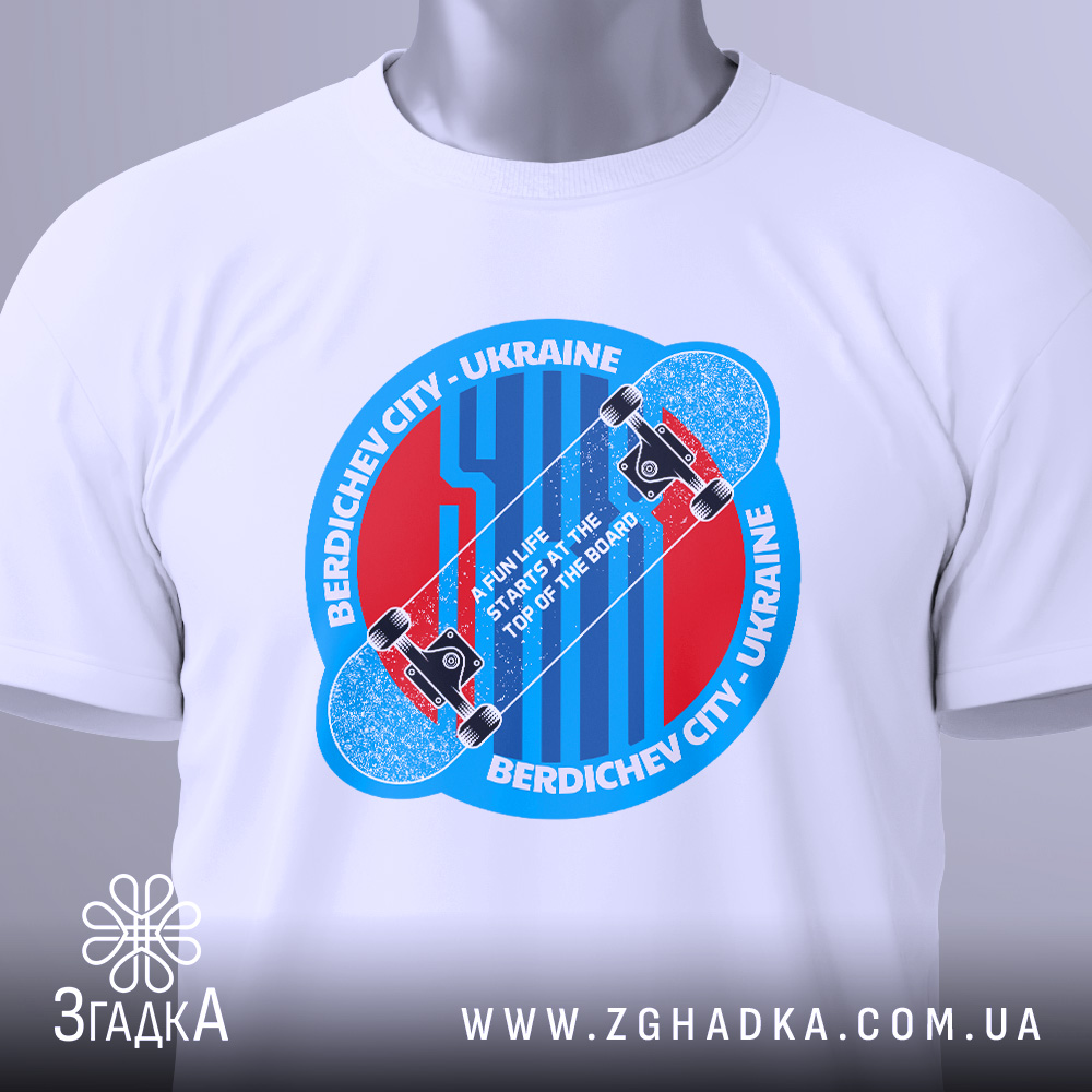Футболка для скейтера виготовлена з високоякісних матеріалів, що забезпечують комфорт під час катання. Принт на футболці символізує свободу, молодість та енергію, що так важливі для кожного скейтера.