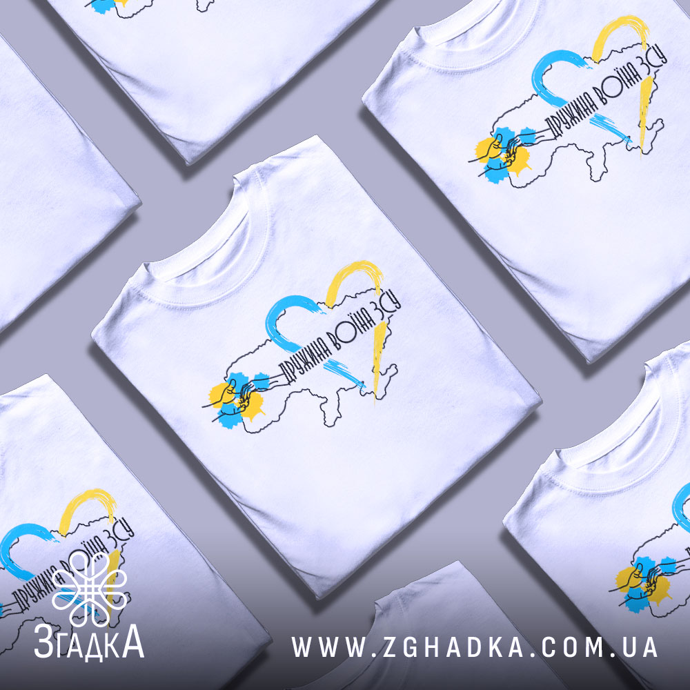 Ця футболка виготовлена з високоякісних матеріалів, що забезпечують комфорт під час носіння. Принт символізує підтримку воїнів ЗСУ та є знаком гордості для дружин, які чекають на своїх героїв.