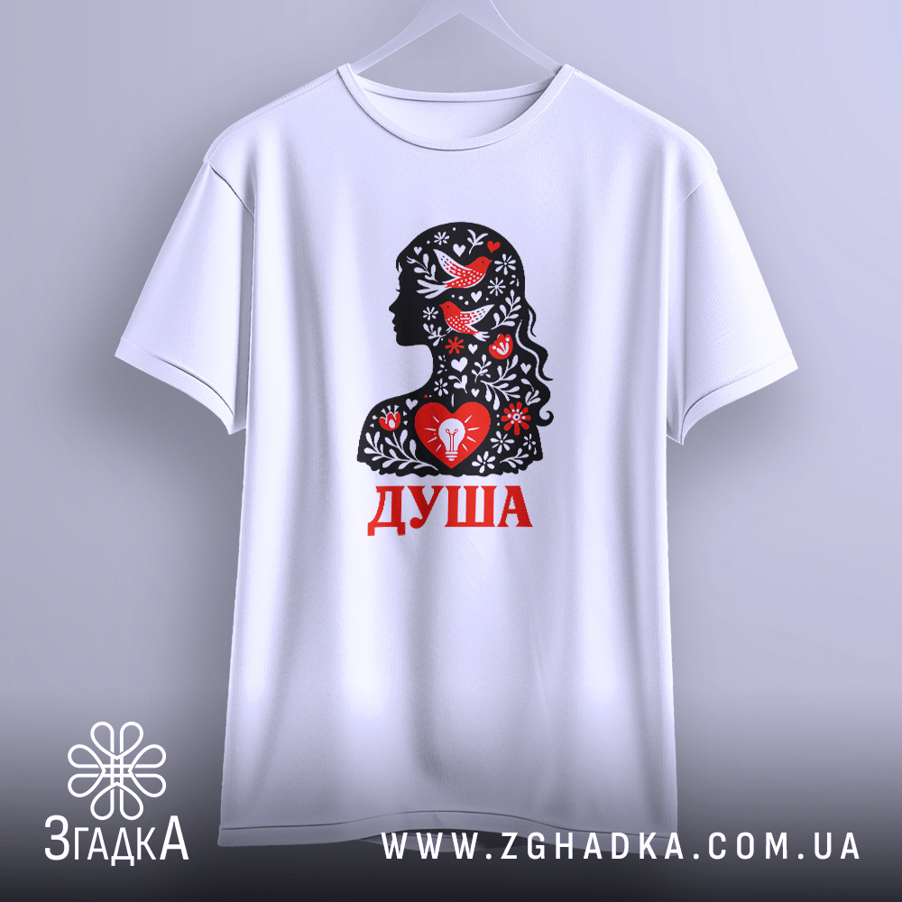 Ця футболка з принтом 'Душа' відображає глибокі почуття та українську ідентичність. Вона створена для тих, хто цінує стиль та емоції. Одягніть її та відчуйте силу української культури!